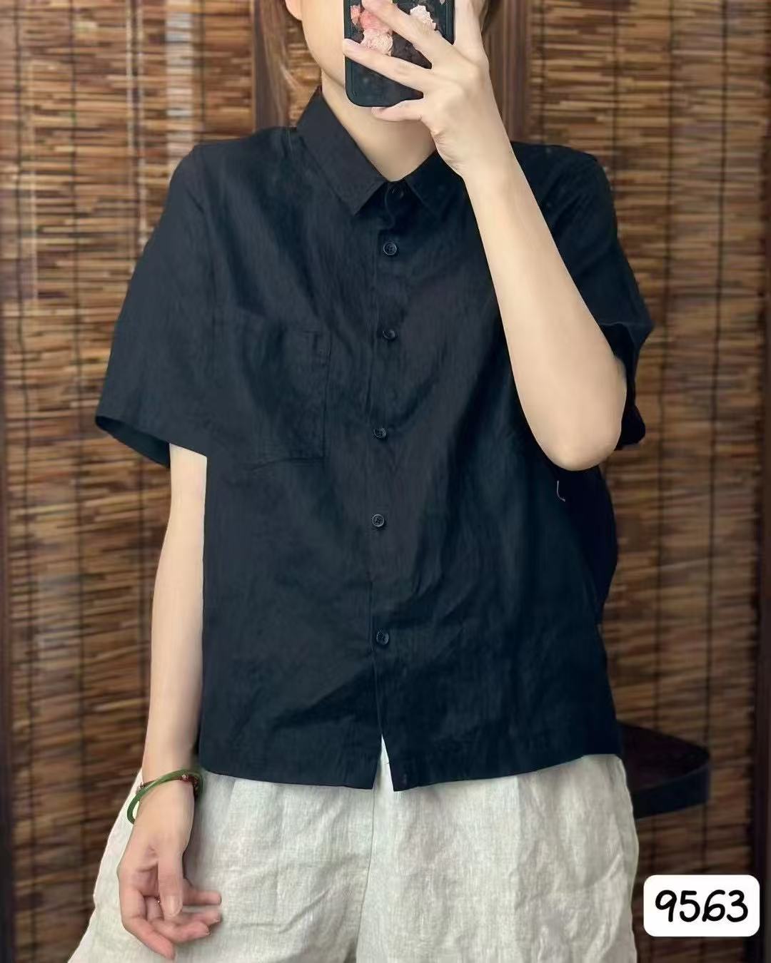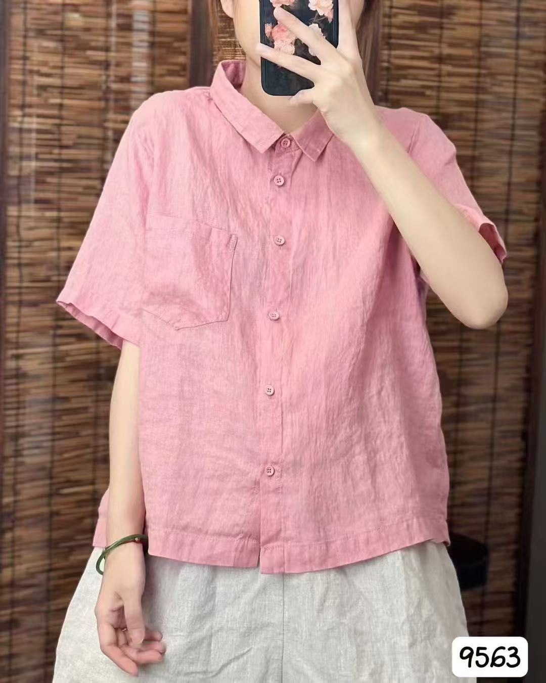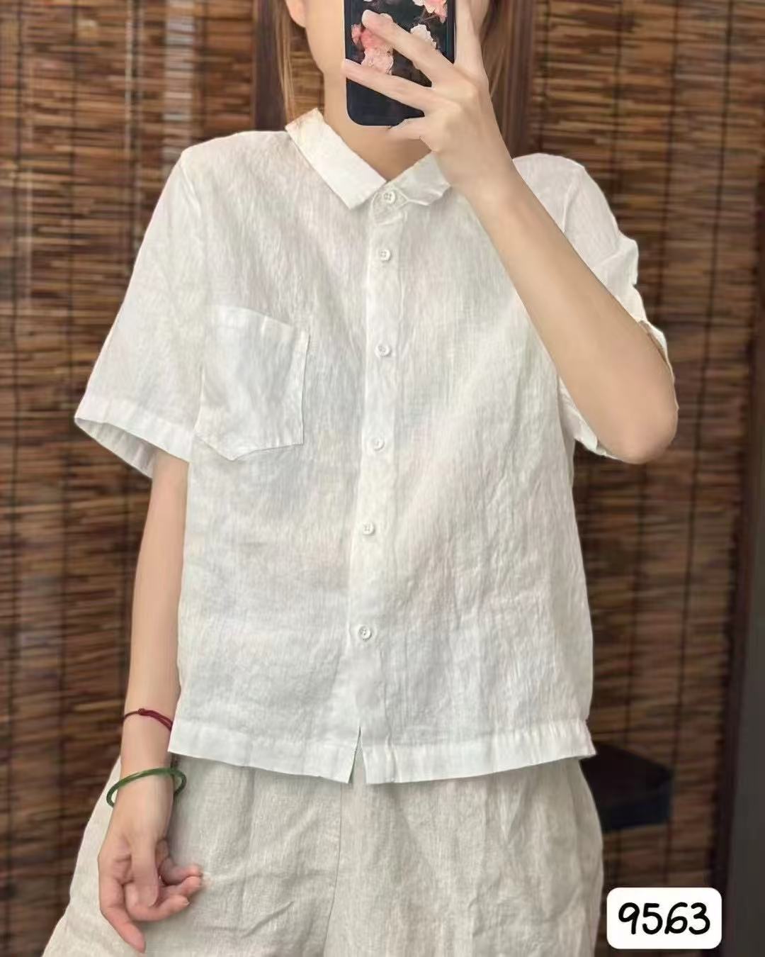 2025 여름 한국어 버전 루즈하고 심플한 샌드 워시 린넨 라펠 반팔 셔츠 가디건 여성용 다용도 캐주얼 셔츠 9563