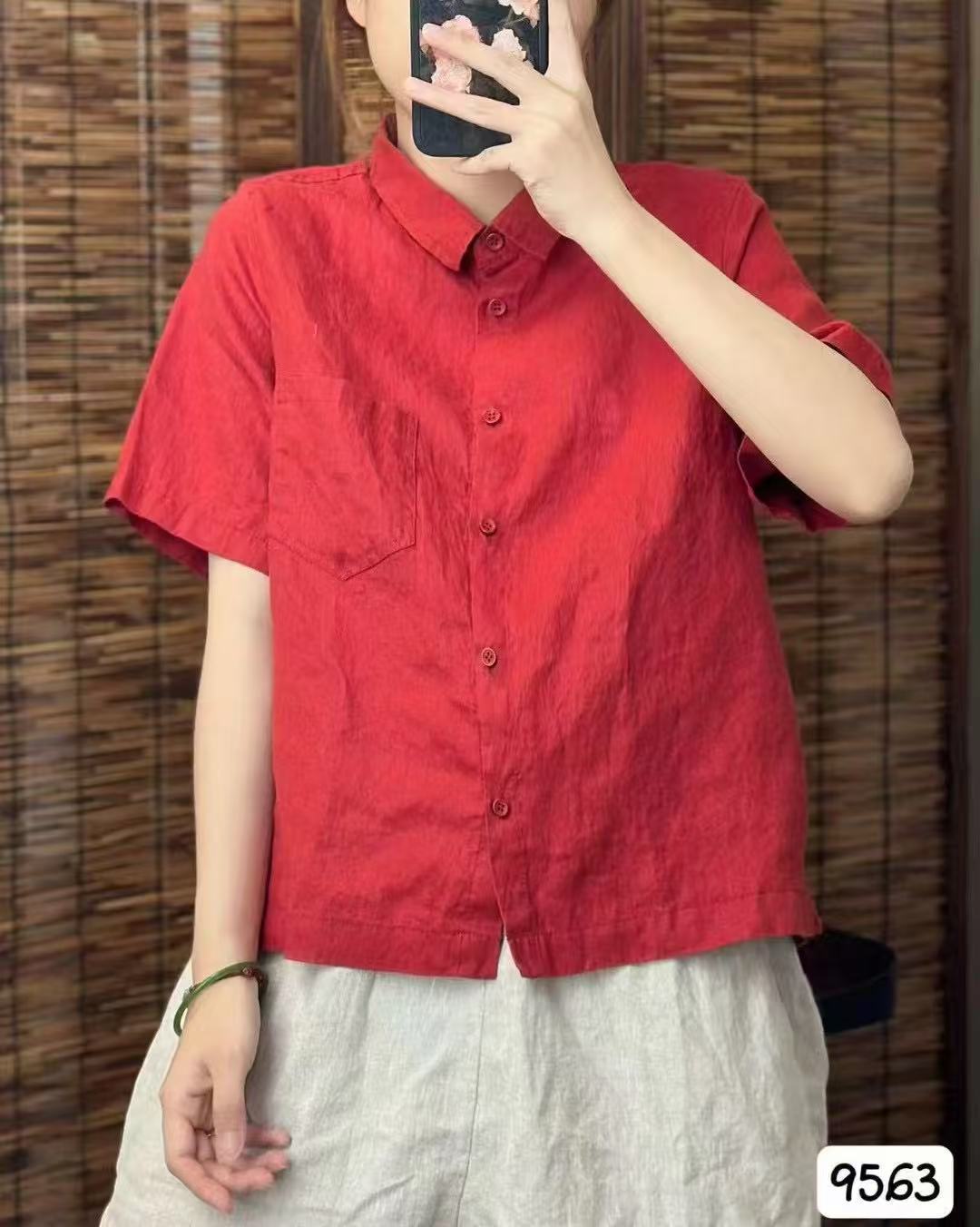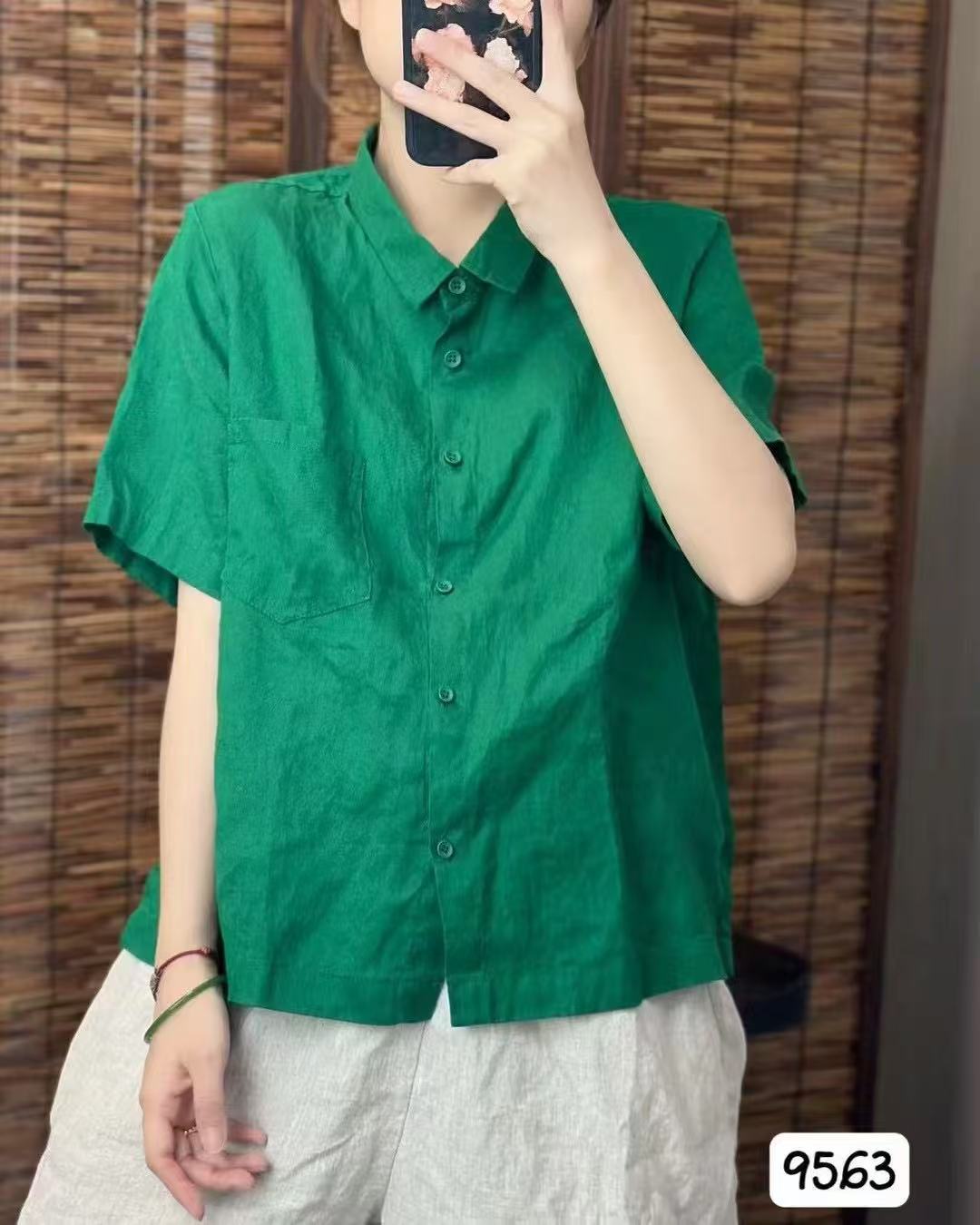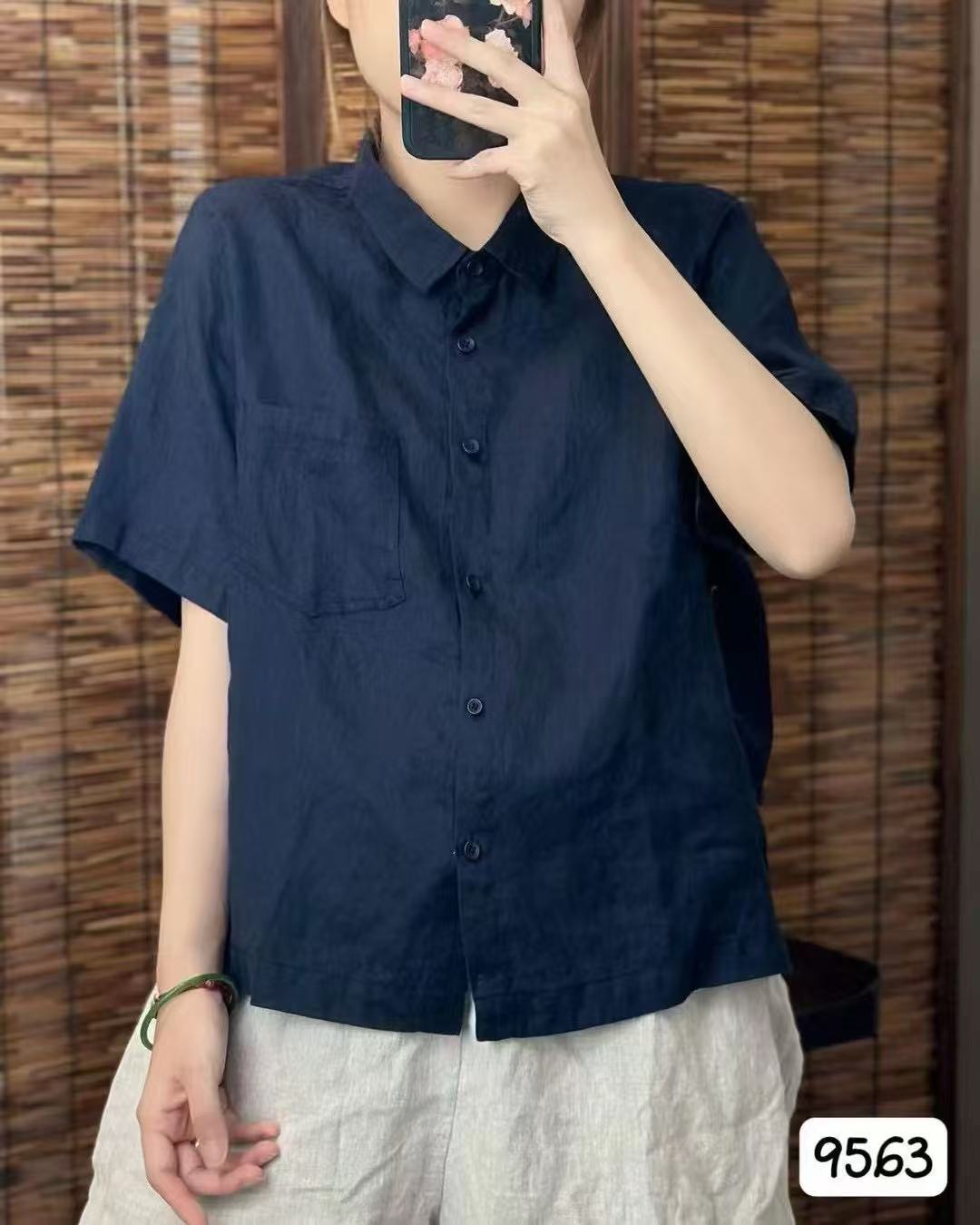 2025 여름 한국어 버전 루즈하고 심플한 샌드 워시 린넨 라펠 반팔 셔츠 가디건 여성용 다용도 캐주얼 셔츠 9563