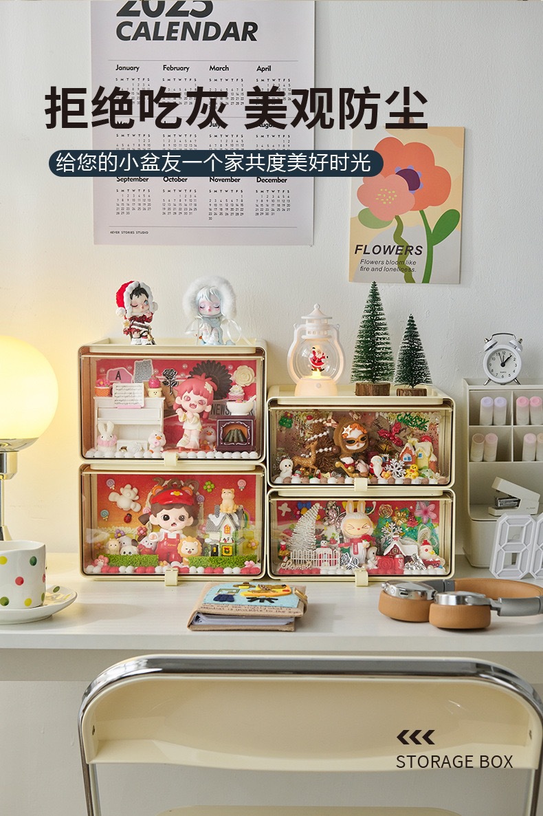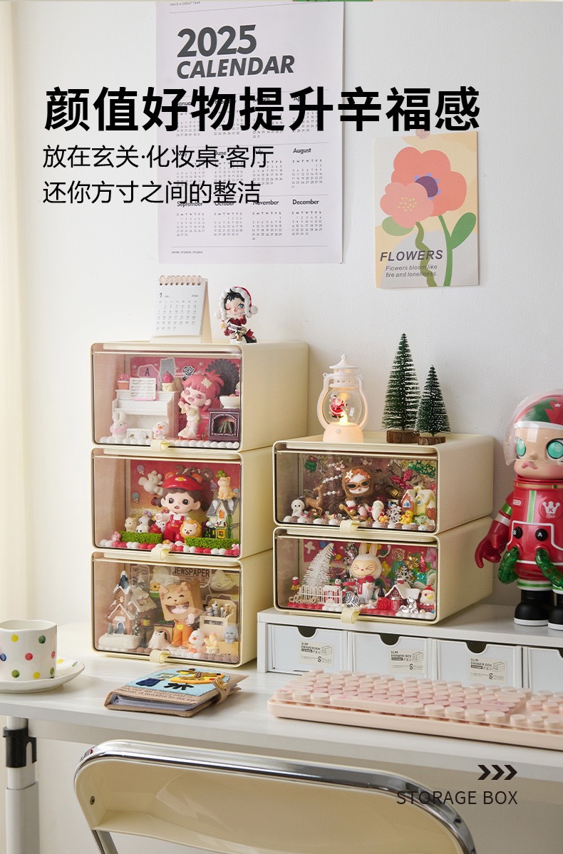 블라인드 박스 핸드메이드 디스플레이 박스 정리함 서랍형 아크릴 투명 장식품 책상 수납 데스크탑 수납함