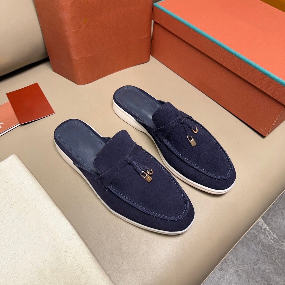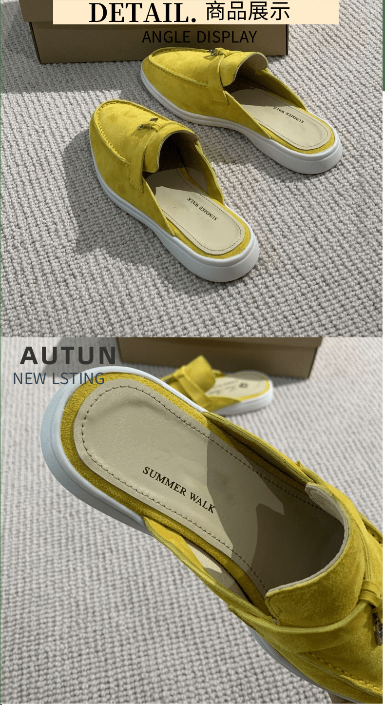 남녀공용 신상품 크로스보더 반슬립온 뮬 슈즈, 고급스러운 가죽 플랫솔 외출용 이탈리아 수제 로퍼스토어 가기