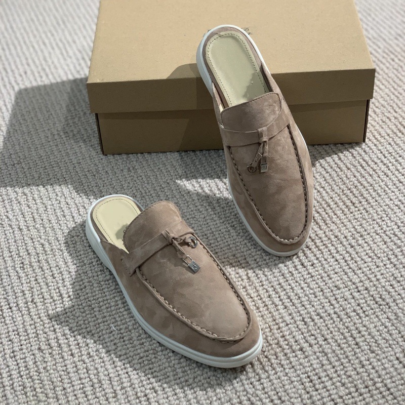 남녀공용 신상품 크로스보더 반슬립온 뮬 슈즈, 고급스러운 가죽 플랫솔 외출용 이탈리아 수제 로퍼