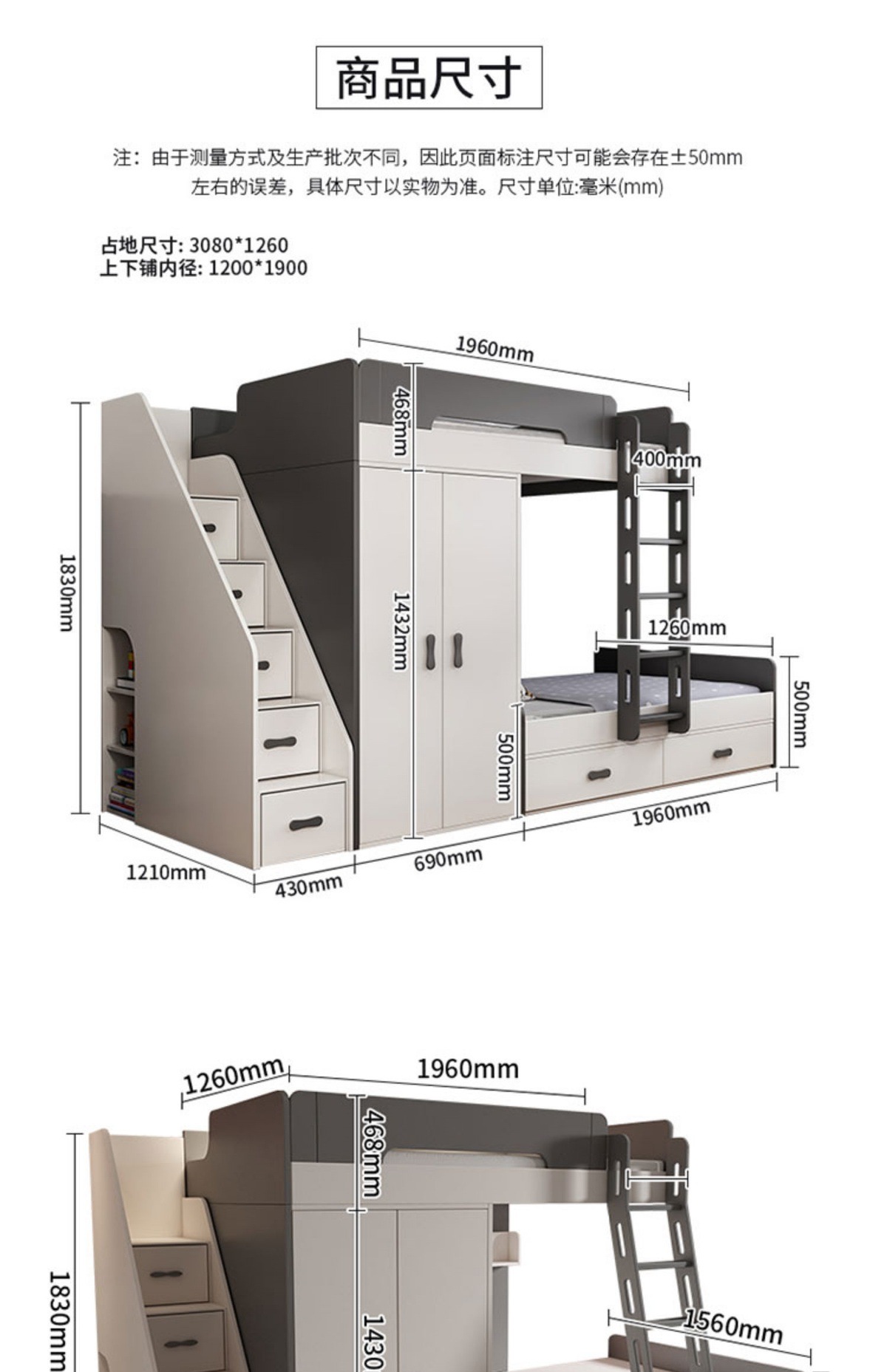 • 이층침대 + 옷장 + 사다리수납장 1.5m