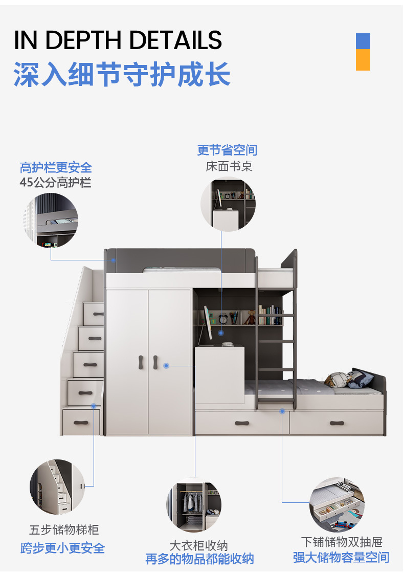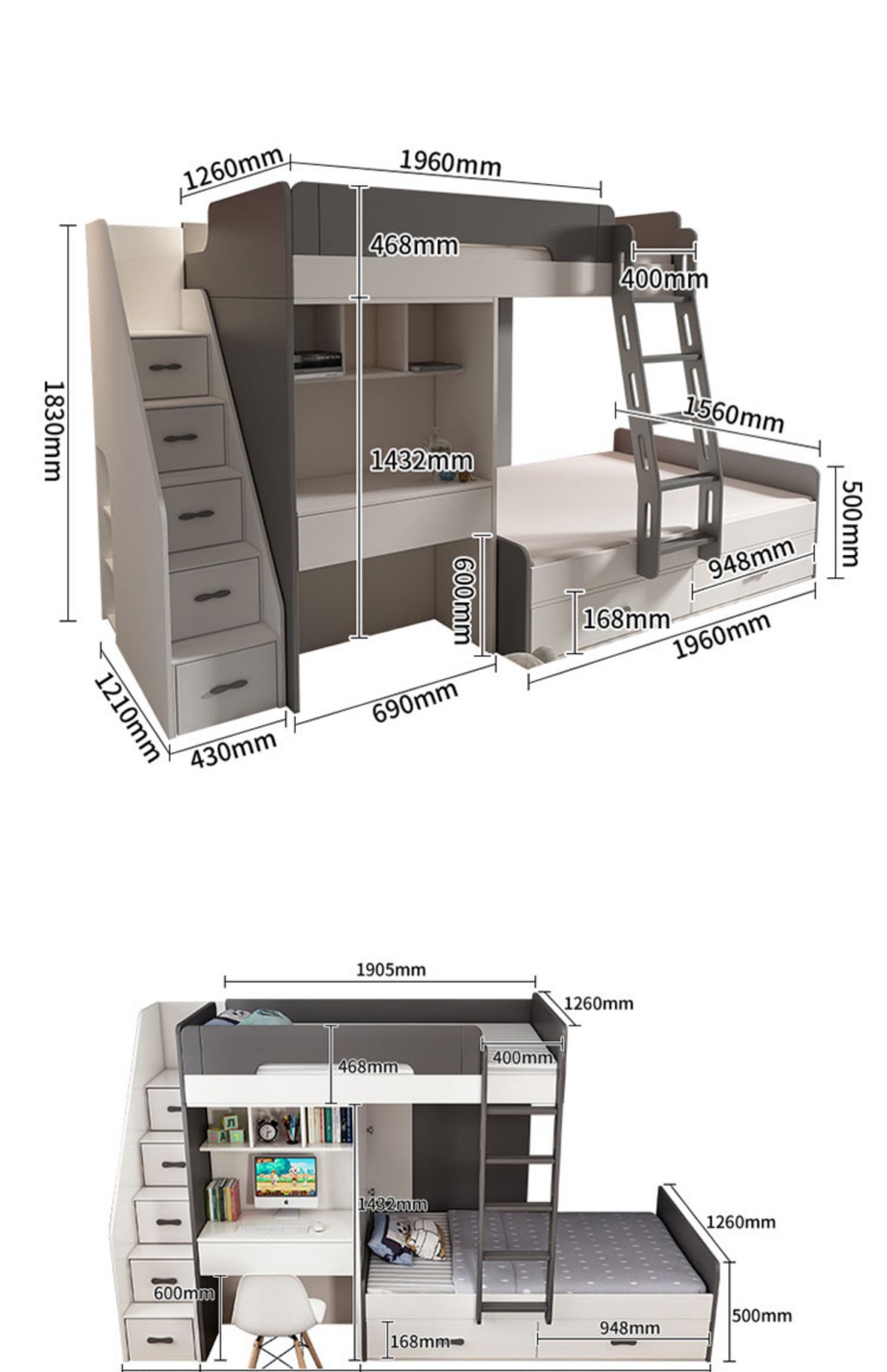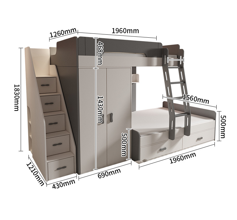 간단한 어린이 침대, 책상이 있는 높낮이 침대, 작은 가정용 평행 이층 침대, 옷장이 있는 이중층 침대스토어 가기