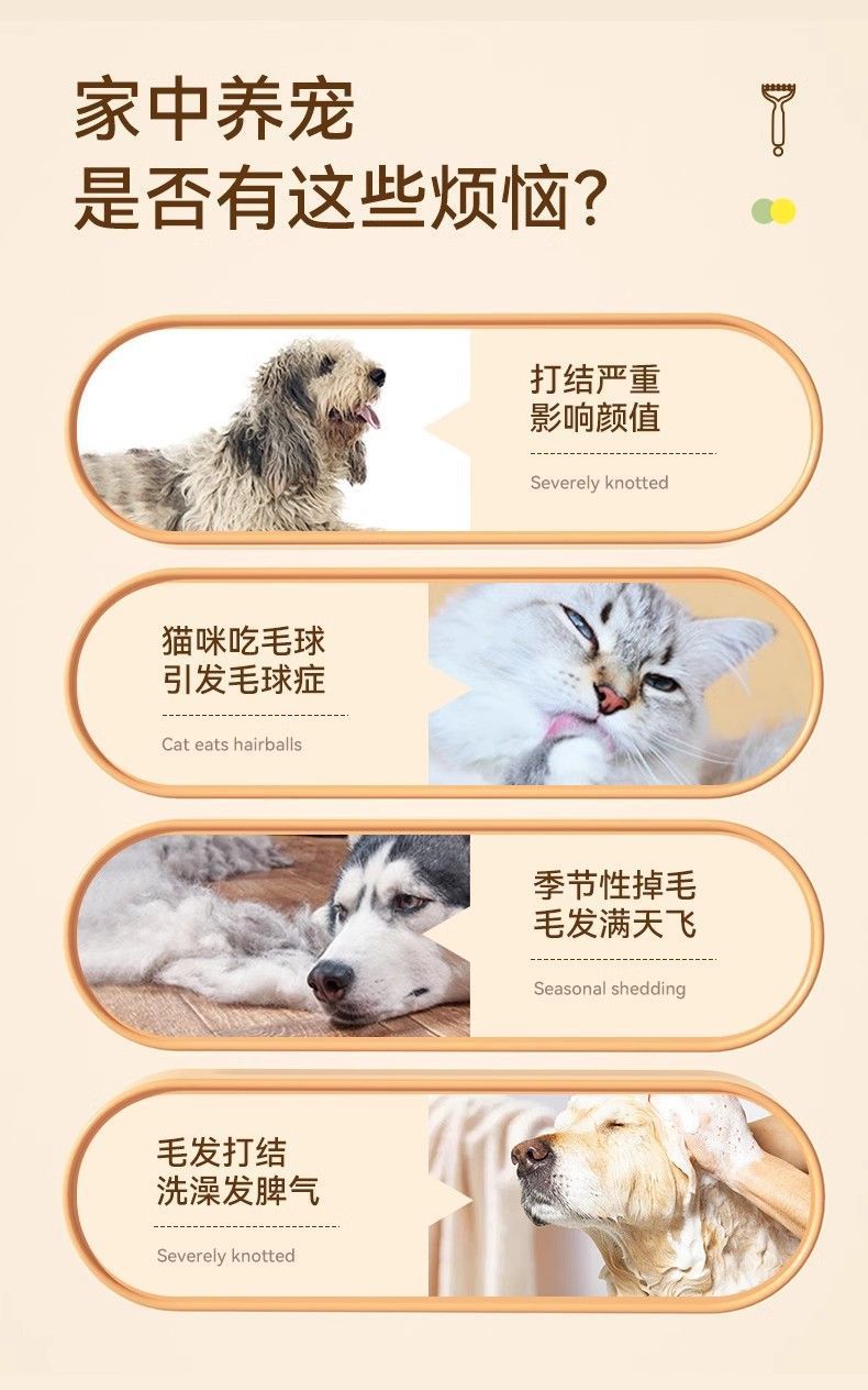 고양이 빗, 매듭을 열고 떠있는 털을 제거하는 데 사용되며, 애완견 빗, 바늘 빗, 긴 털을 청소하고 고양이와 개를 위한 특수 제모 도구입니다.