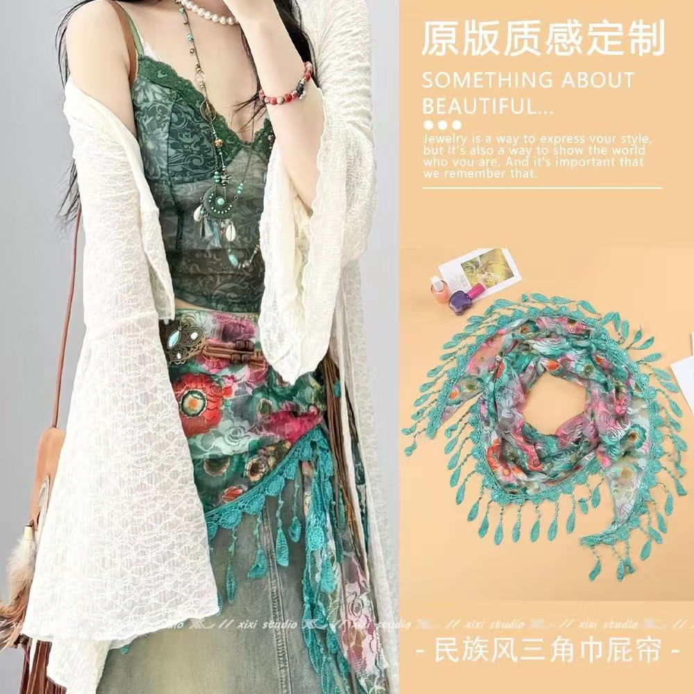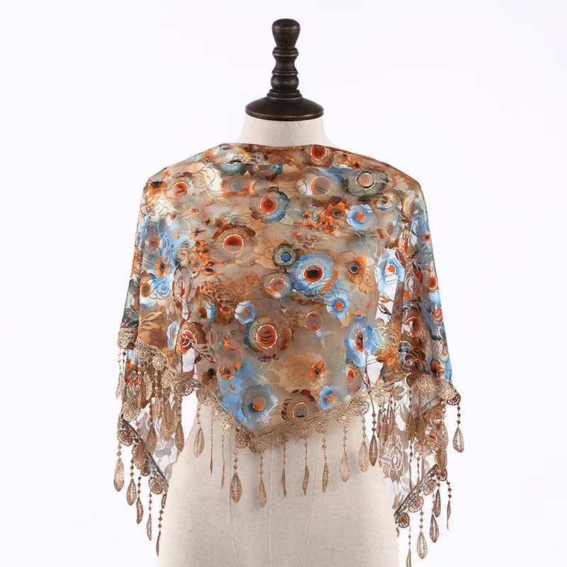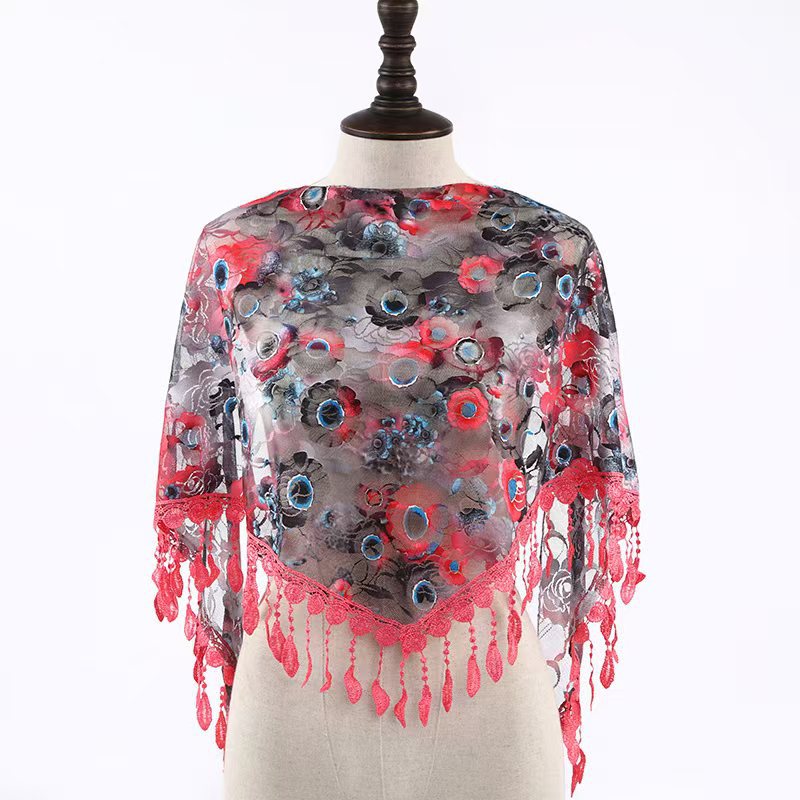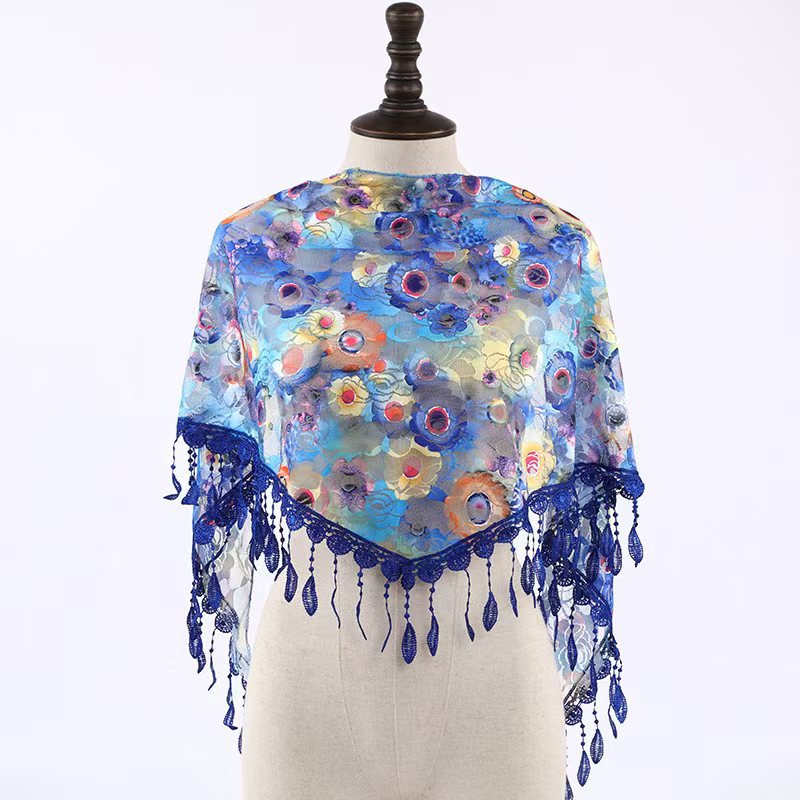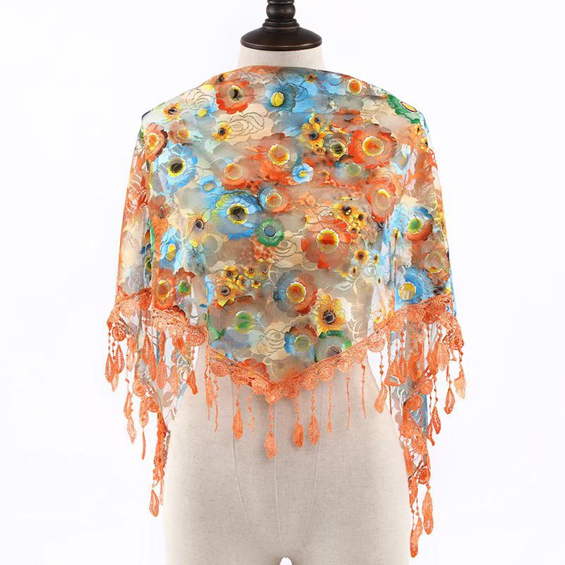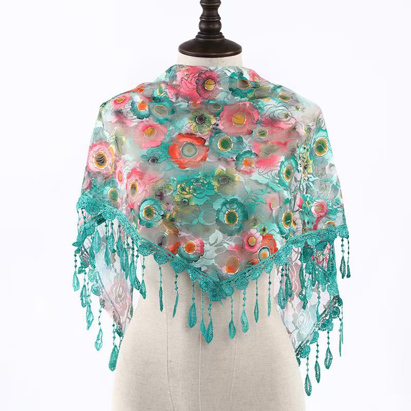 가을 신상품 꽃무늬 레이스 한국식 삼각 스카프 클래식 통기성 중공 여성 삼각 스카프 장식 베일스토어 가기