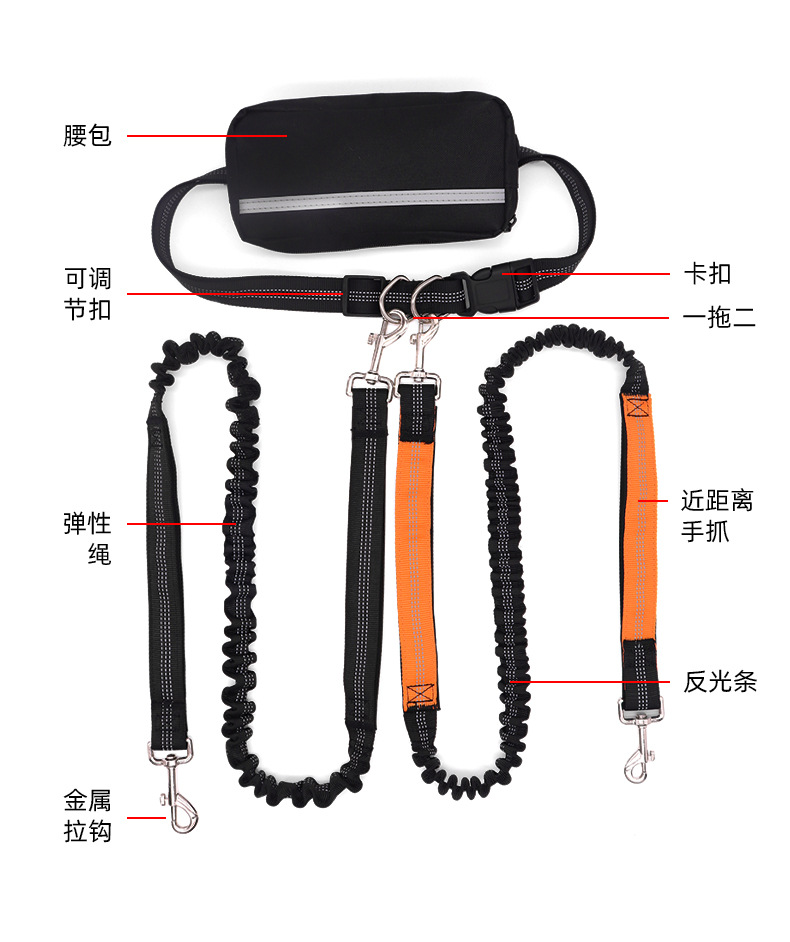 양방향 견인 로프, 1-2개의 달리기 개 산책 로프, 폭발 방지 개 로프, 대형견 애완동물 견인 로프