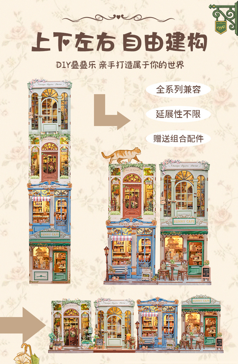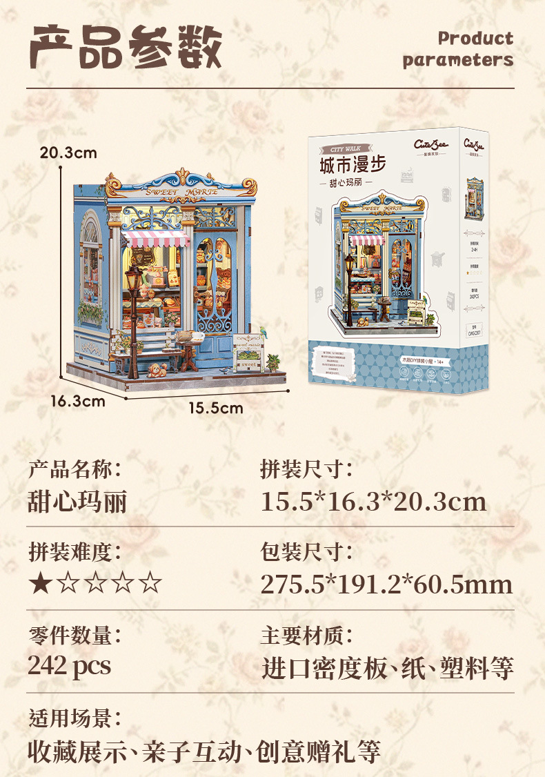 CuteBee Sweetheart Mary City Walk 미니 캐빈 미니어처 장면 DIY 손으로 조립한 입체 퍼즐