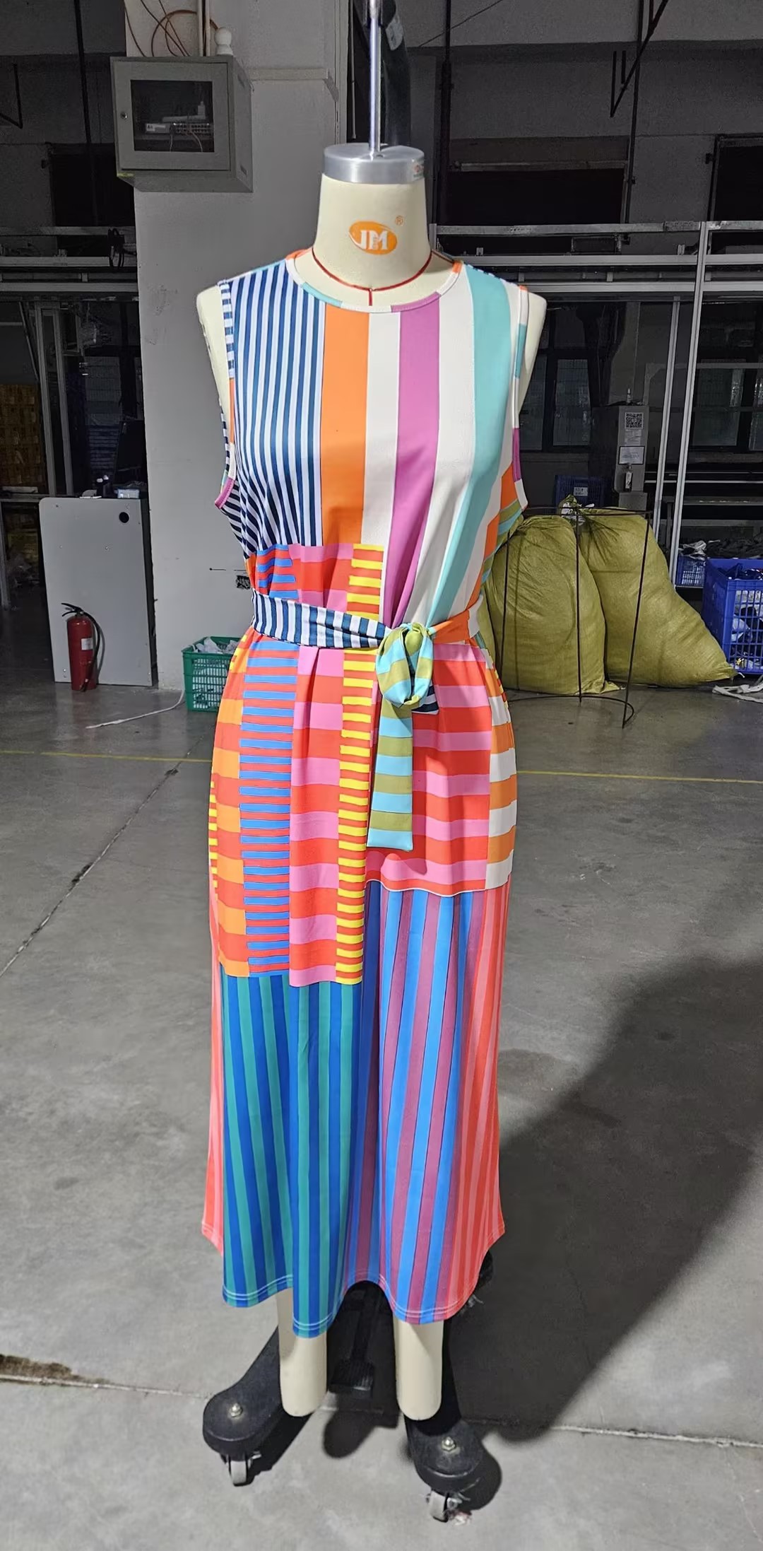 국경을 넘는 독립 스테이션 아마존 꽃무늬 우아한 새 드레스 E483 여성용 민소매 드레스스토어 가기