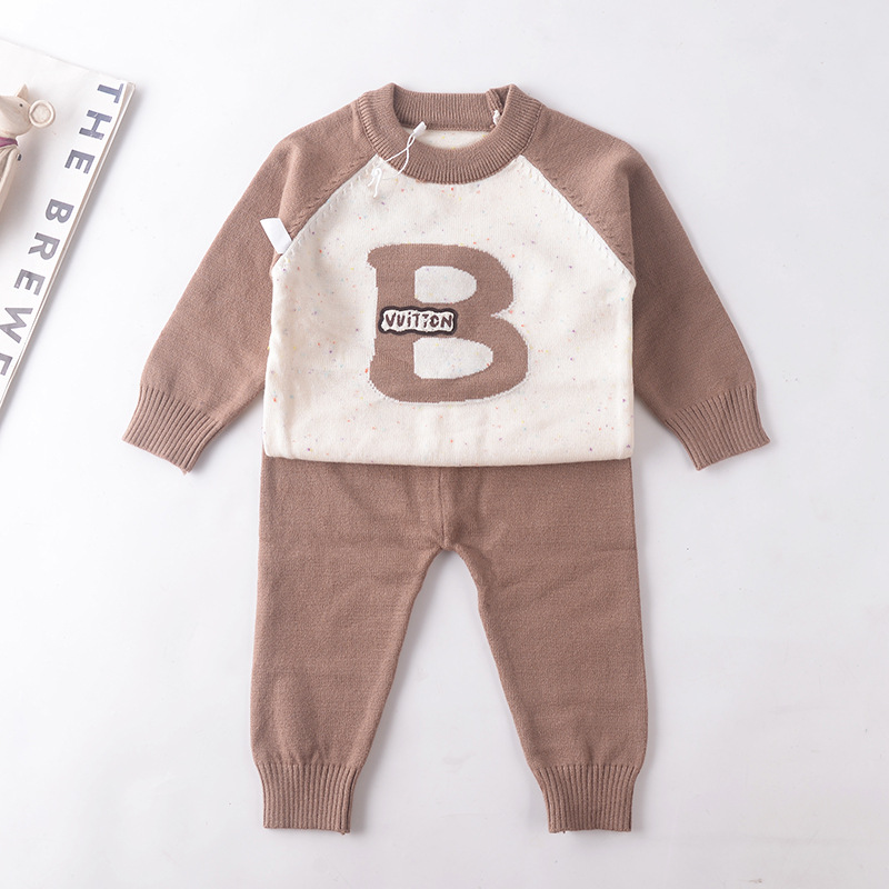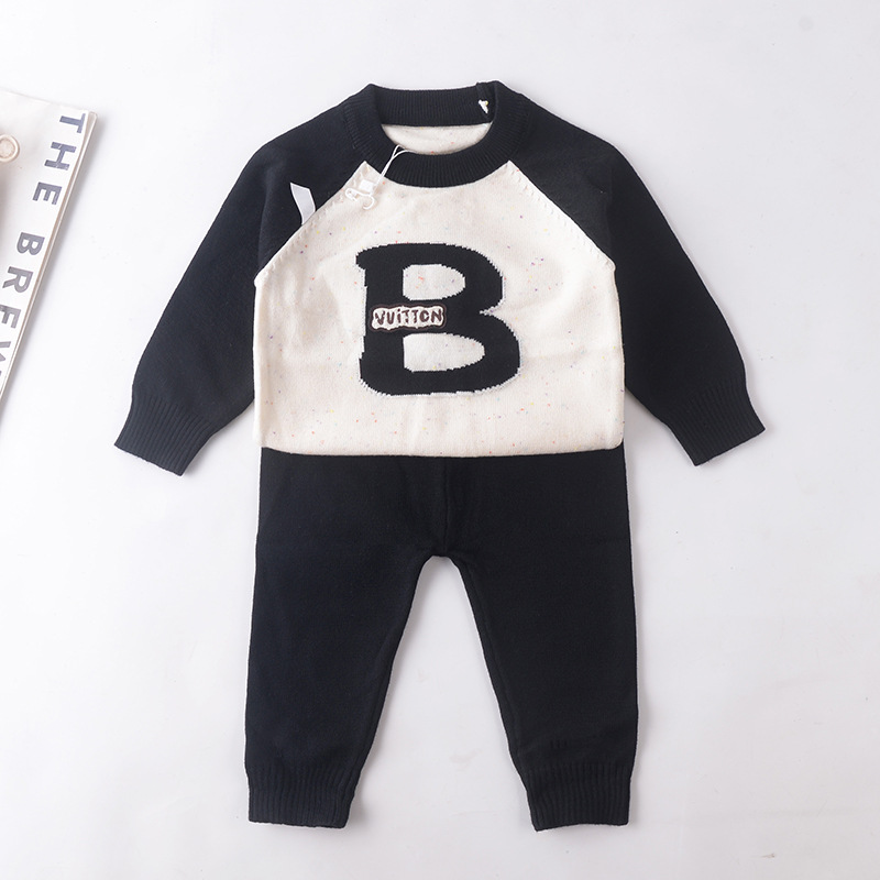 아기 한국식 스웨터 정장 가을 소년 아기 니트 컬러 블록 문자 스웨터 소년 투피스 스웨터 유행스토어 가기