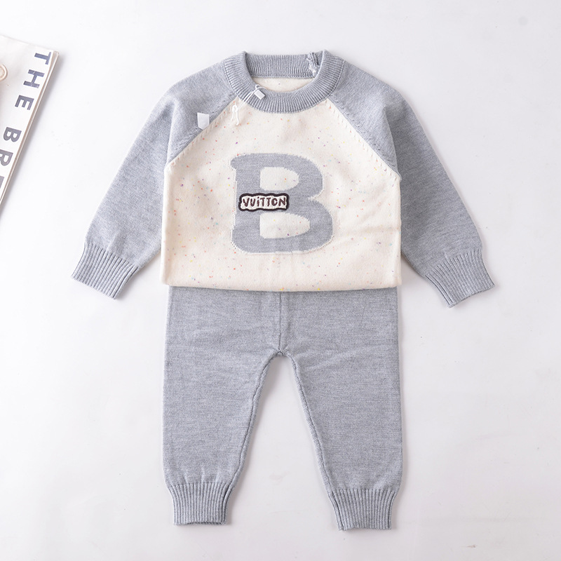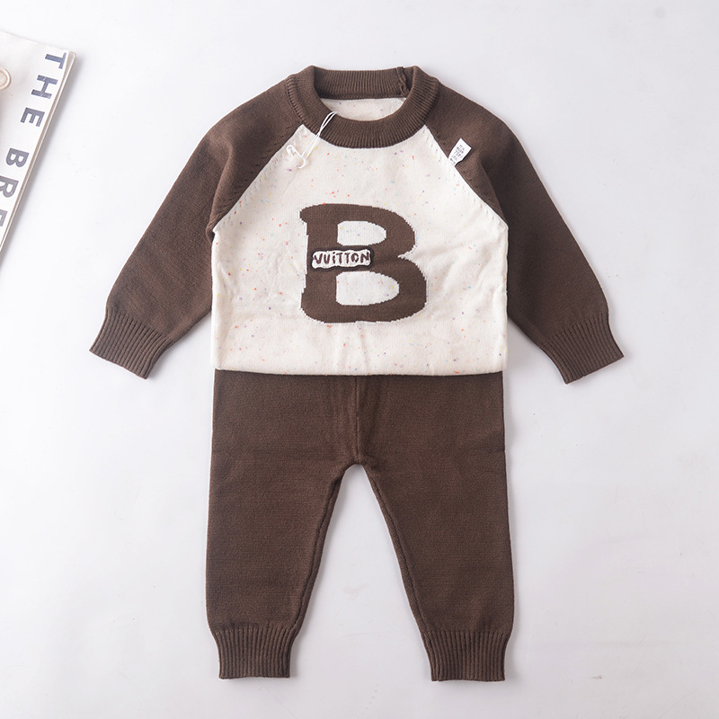 아기 한국식 스웨터 정장 가을 소년 아기 니트 컬러 블록 문자 스웨터 소년 투피스 스웨터 유행