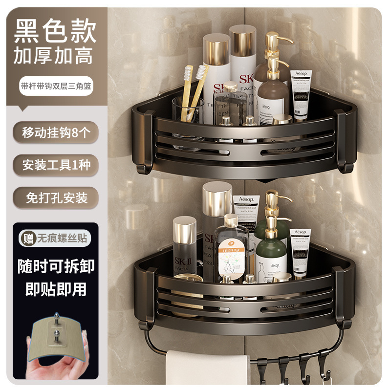 • [높이고 두꺼워짐] 후크가 있는 더블 레이어 로드건 그레이 삼각형 바구니 68MM