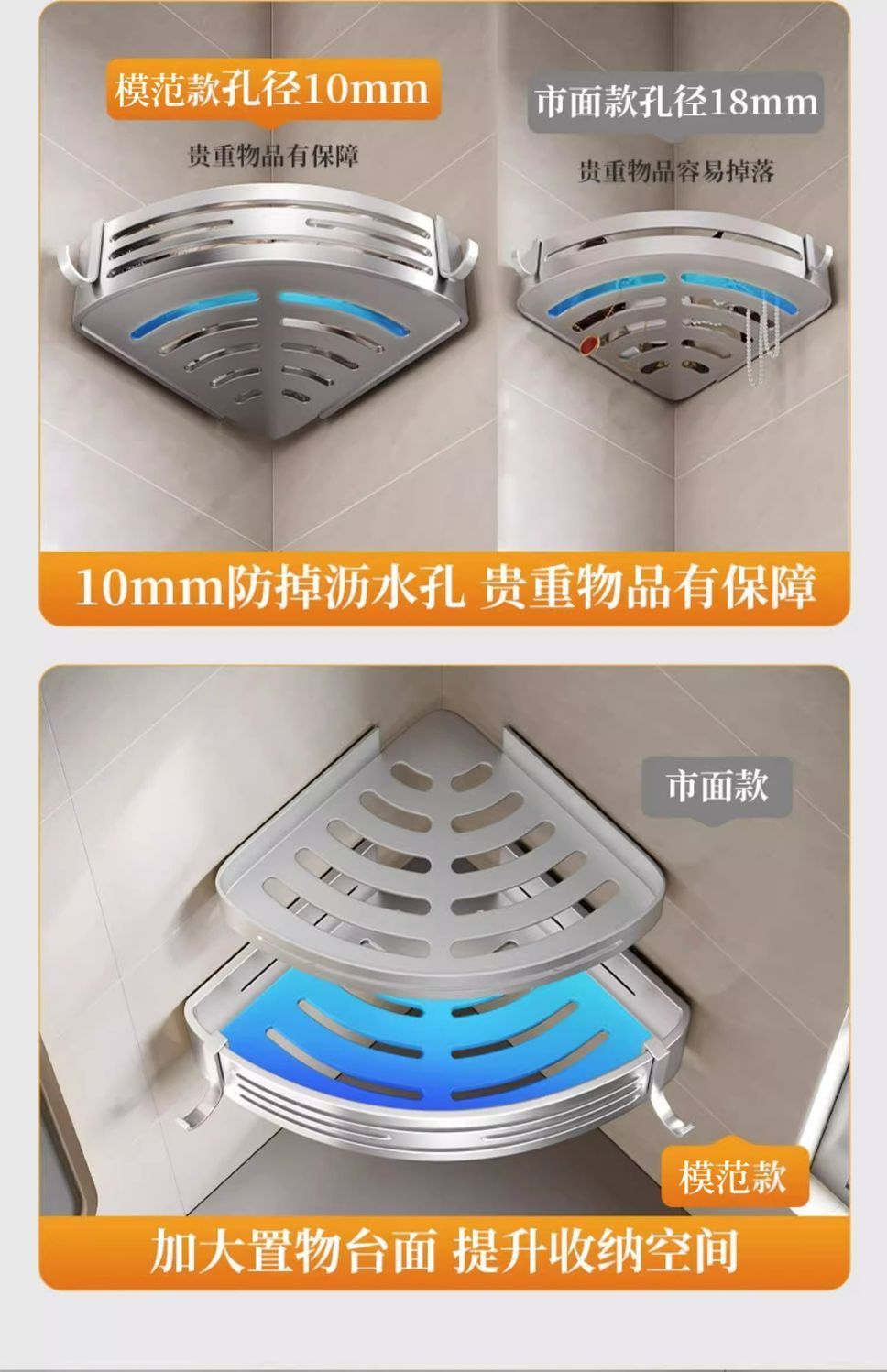 • [높고 두꺼워짐] 후크가 있는 3겹 은색 삼각형 바구니 68MM