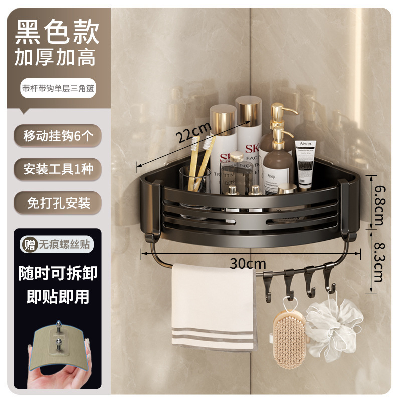 • [높고 두꺼워짐] 후크가 있는 단층 막대 - 검정색 삼각형 바구니 68MM