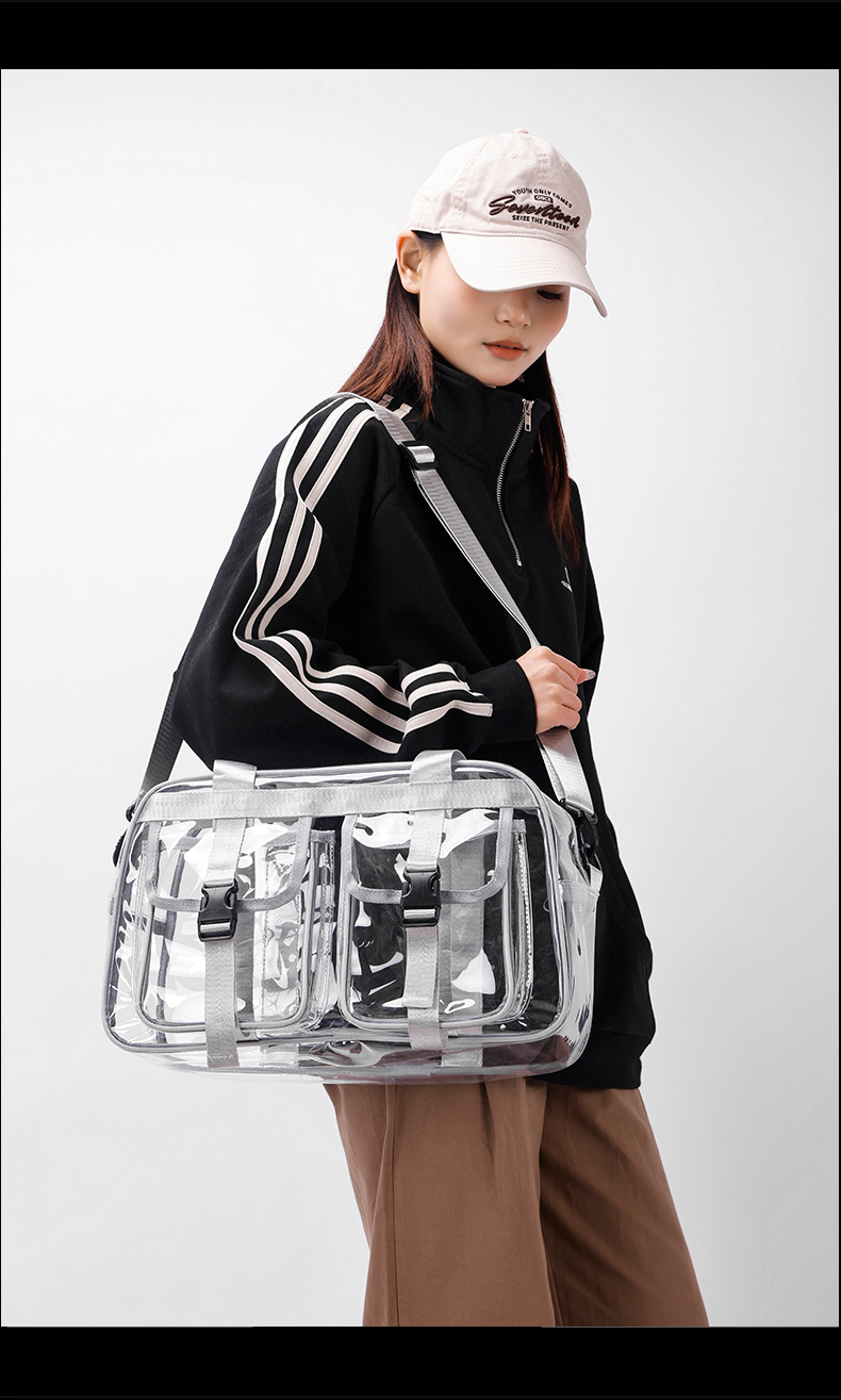 여성을위한 PVC 투명 여행 가방 2025 대용량 배낭 패션 맞춤형 배낭 완전 투명 방수 학생 학교 가방