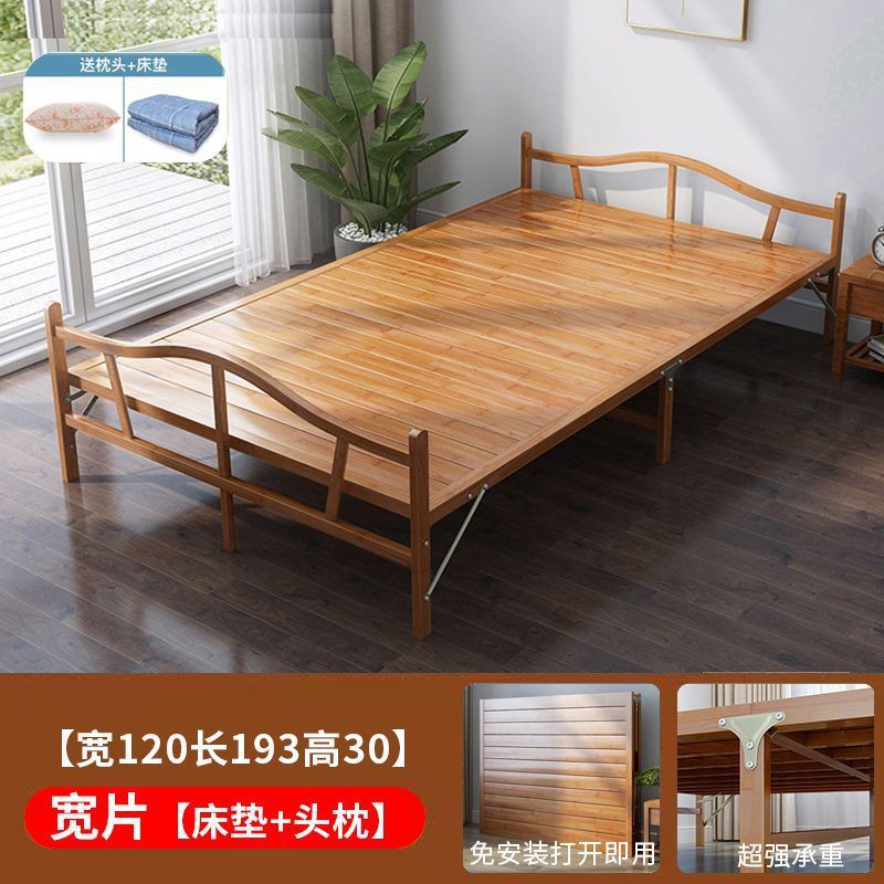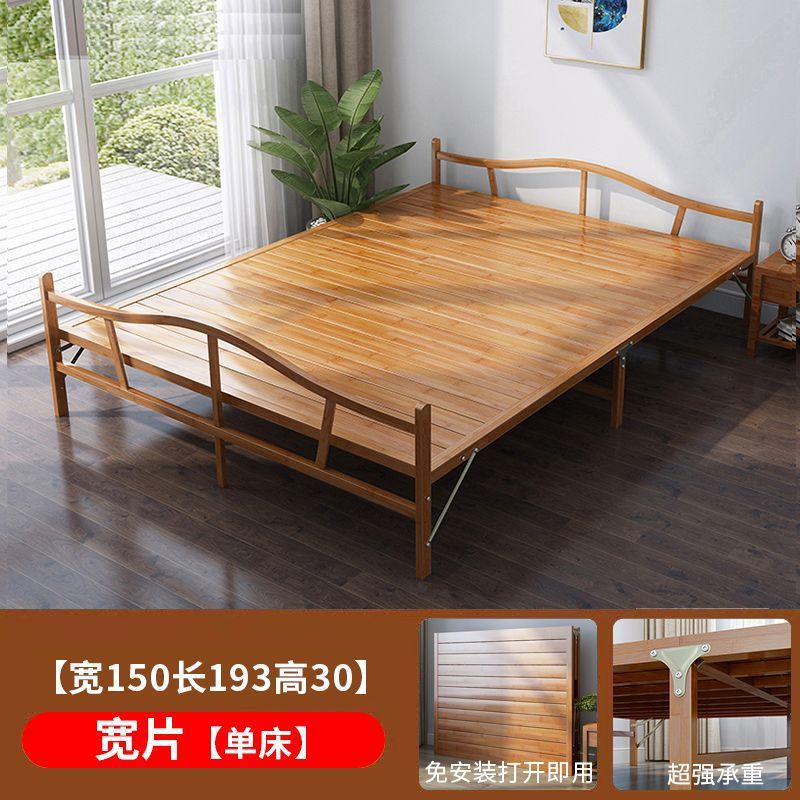 대나무 침대 접이식 침대 싱글 더블 홈 점심 시간 시원한 침대 성인 임대 주택 간단한 단단한 나무 침대 대나무 판자스토어 가기