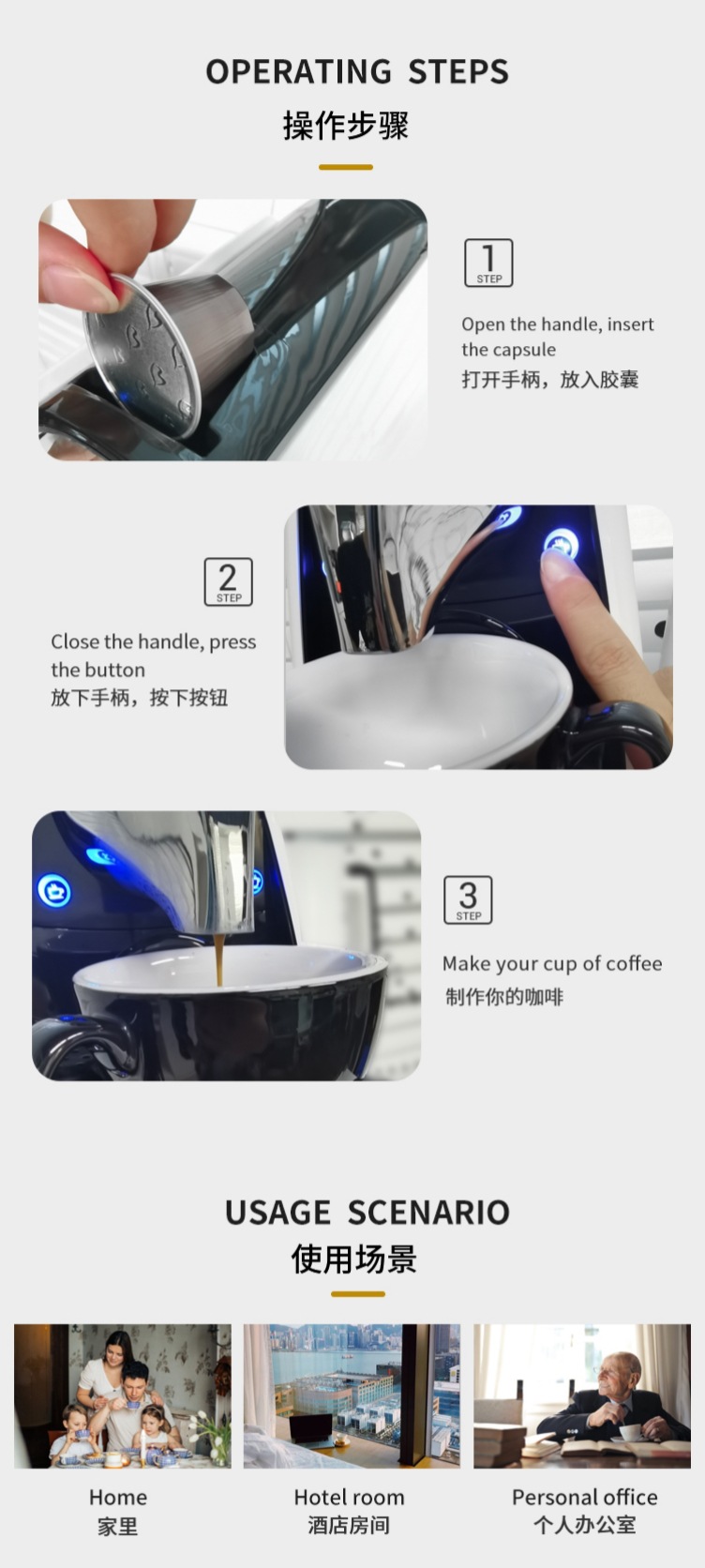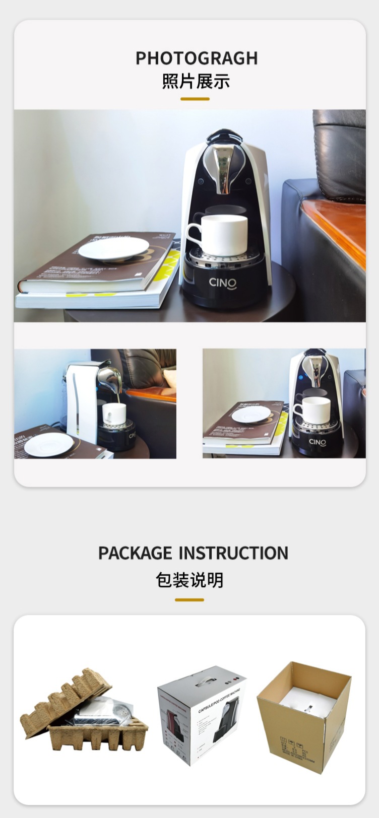 CINO Zoe 캡슐 커피 머신 20bar 고압 추출은 매장에 적합한 다양한 브랜드의 캡슐을 지원합니다.
