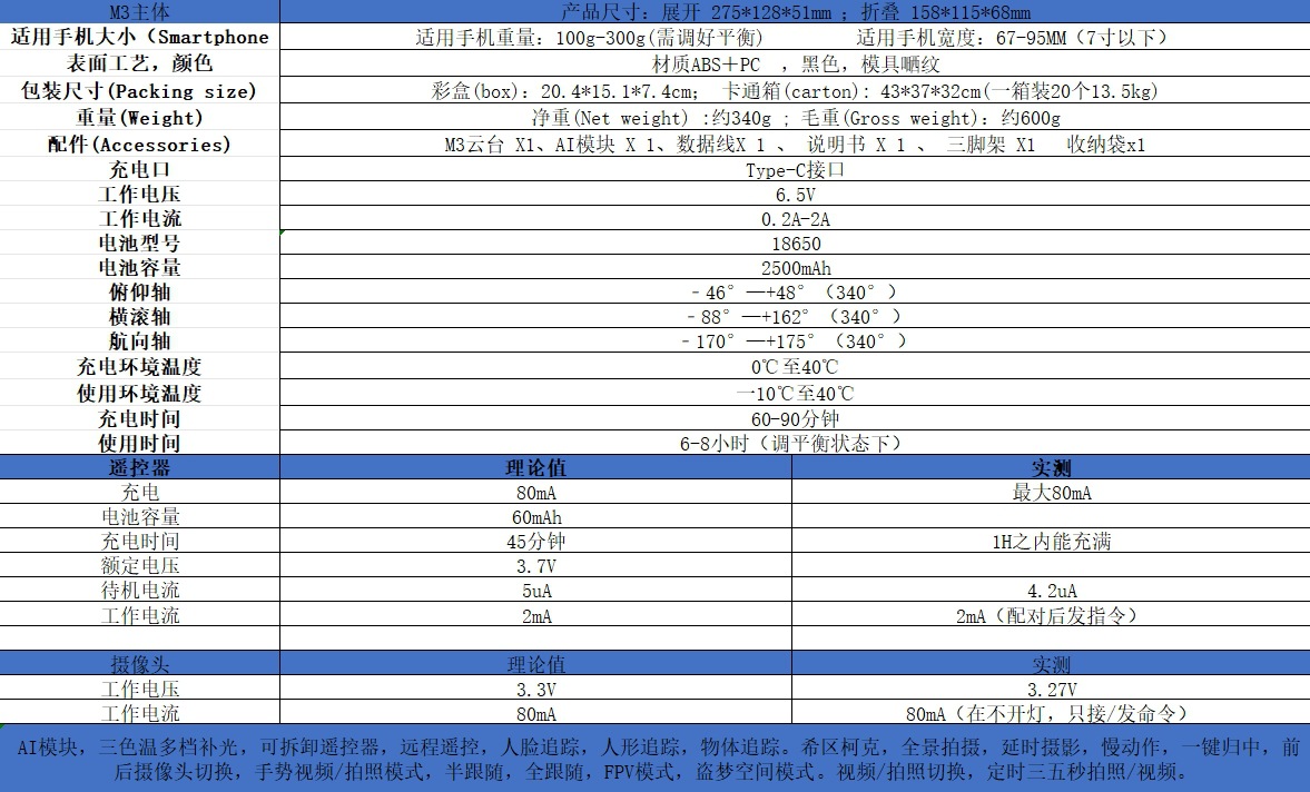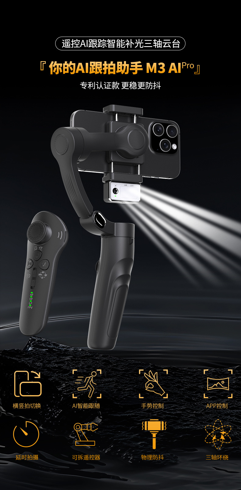 새로운 M3 휴대 전화 안정기 3 축 손떨림 방지 짐벌 휴대용 촬영 라이브 AI 얼굴 추적 원격 제어 셀카 스틱