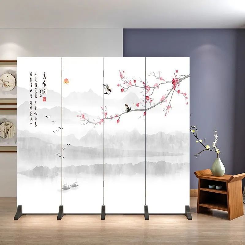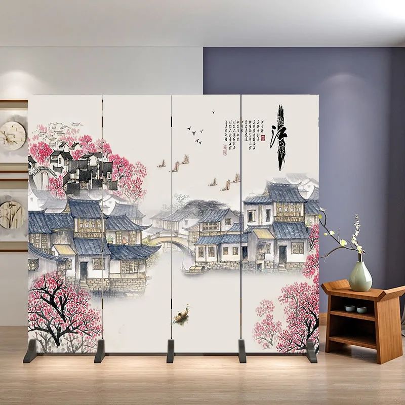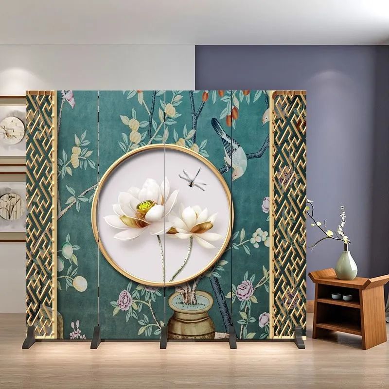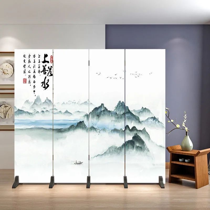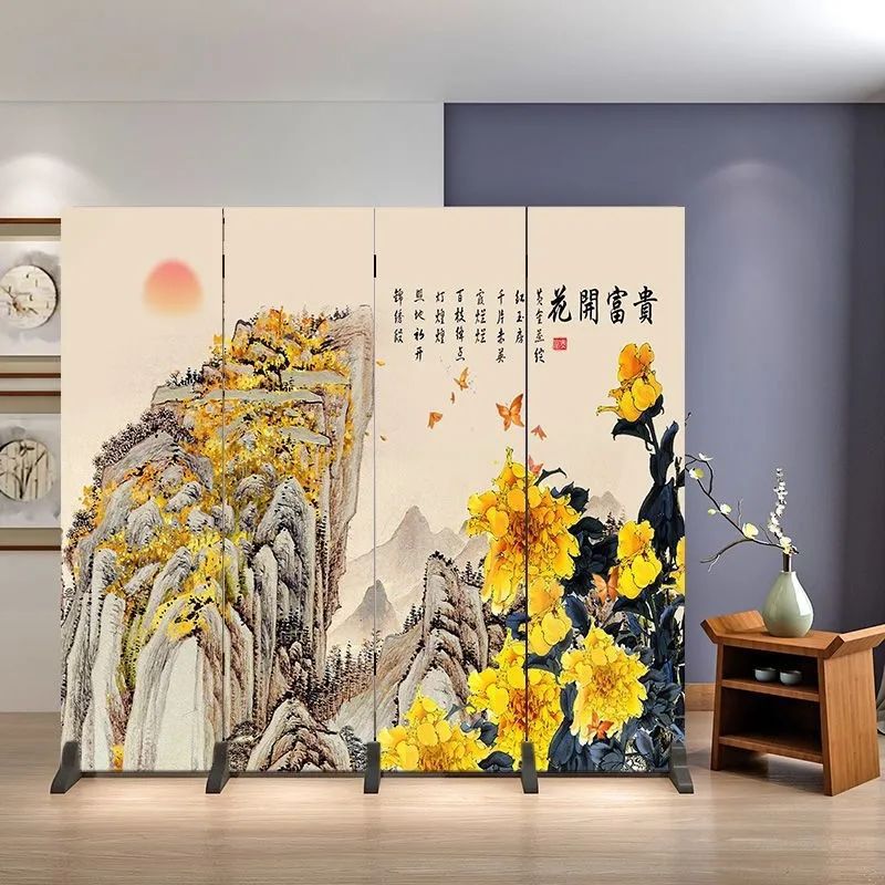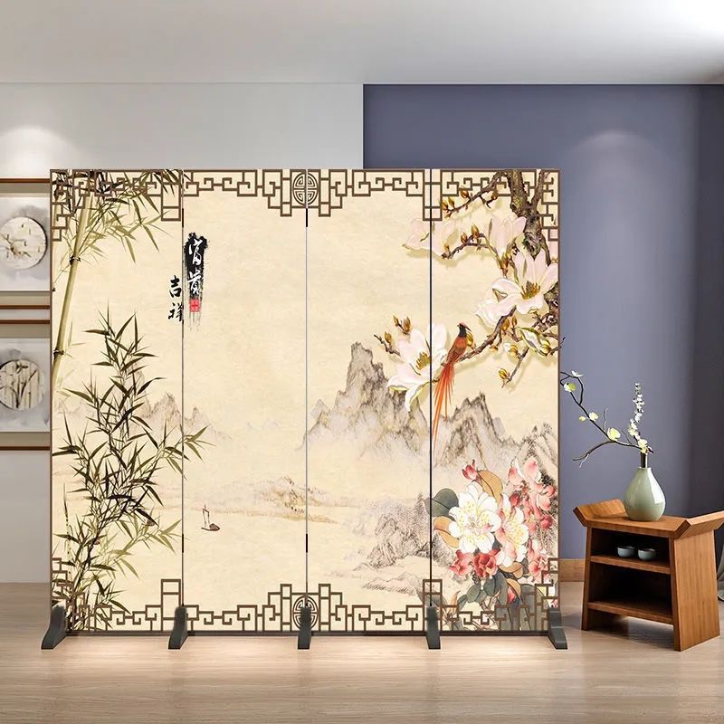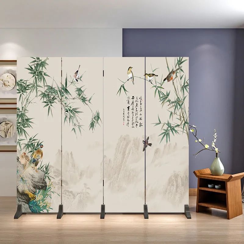 거실을 위한 골동품 스크린 파티션, 새로운 중국 스타일의 접이식 모바일 침실 홈 오피스, 새로운 패브릭 스크린스토어 가기