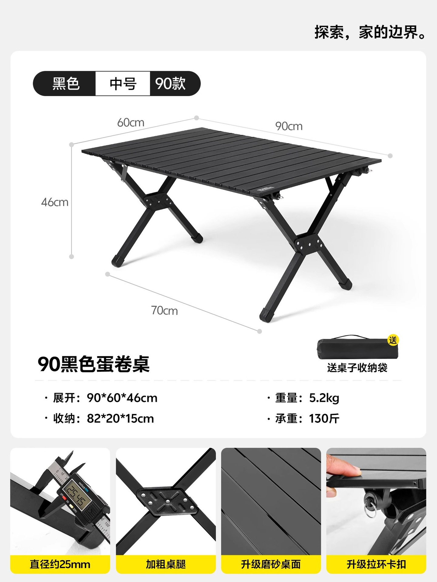 • [2-4인] 중형 90cm 무광 블랙 (2.5+ 두꺼운 강관)