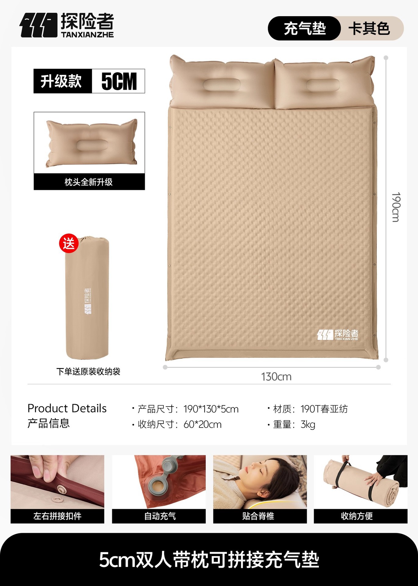 • 【5cm 두께】 2인용 - 수납 가방 증정 (【자동 공기 주입/좌우 연결형】)