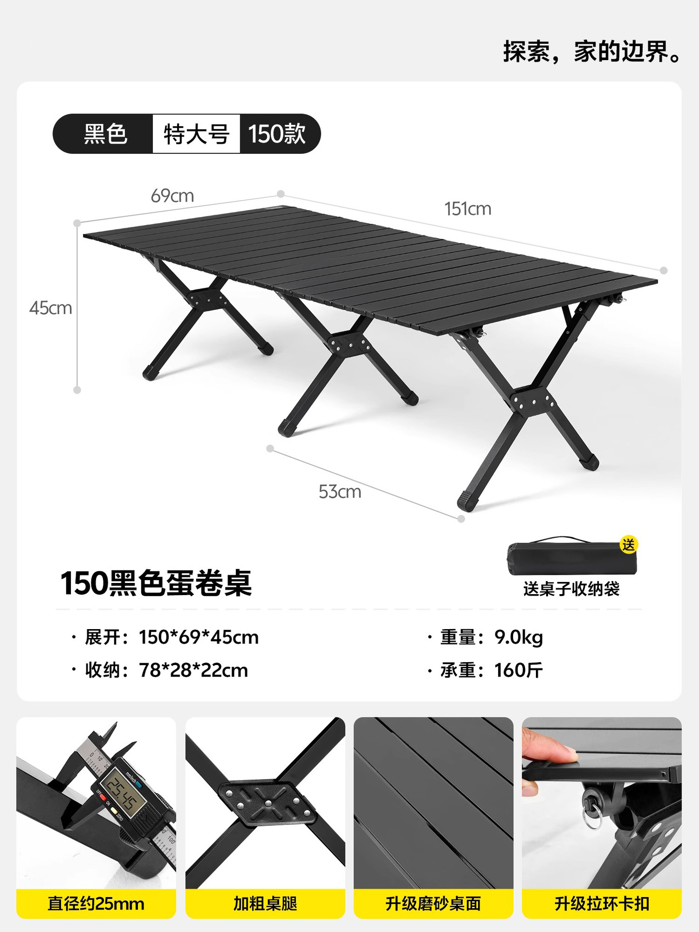 • [2-8인] 특대형 150cm 무광 블랙(2.5+ 특대 스틸 파이프)