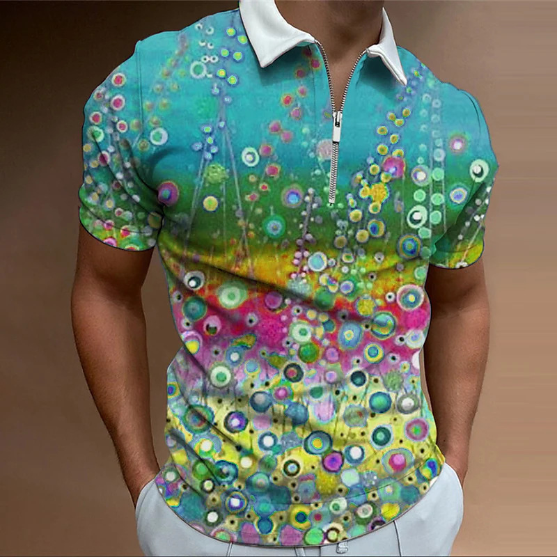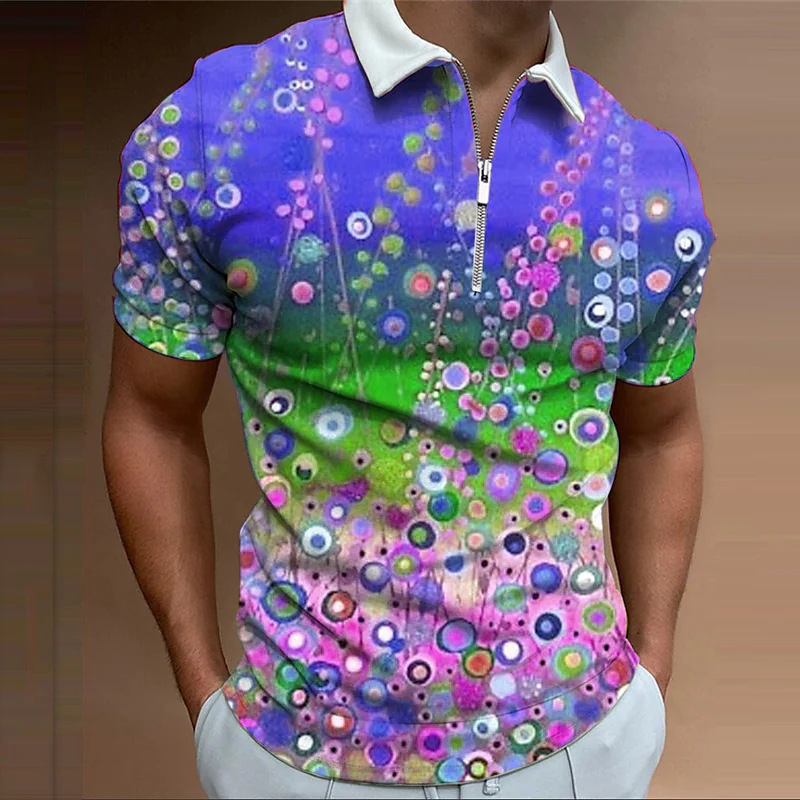 여름 유럽과 미국의 트렌드 남성 지퍼 옷깃 폴로 셔츠 패션 3D 인쇄 반팔 골프 셔츠 공장 직접 판매스토어 가기
