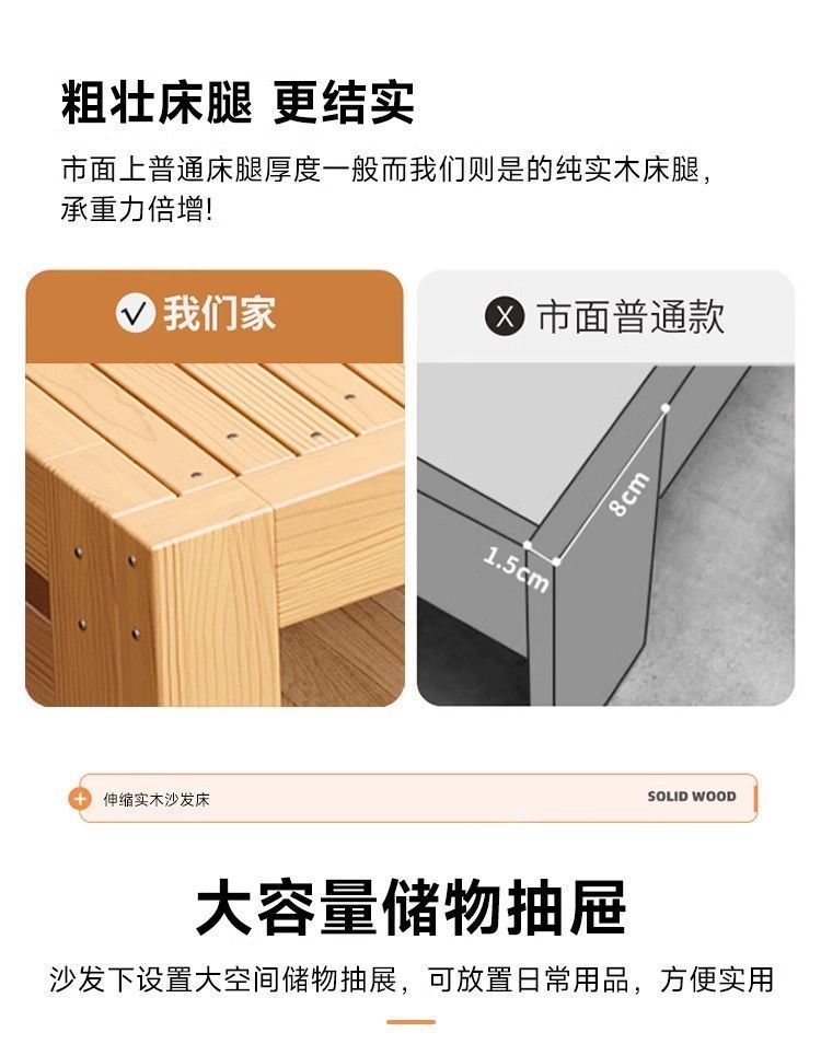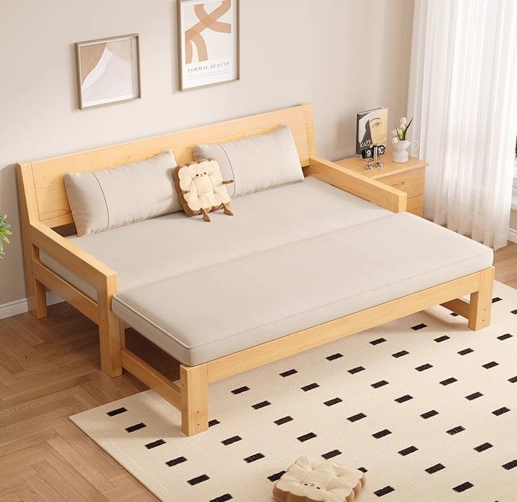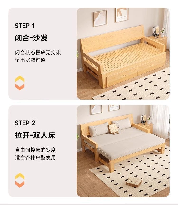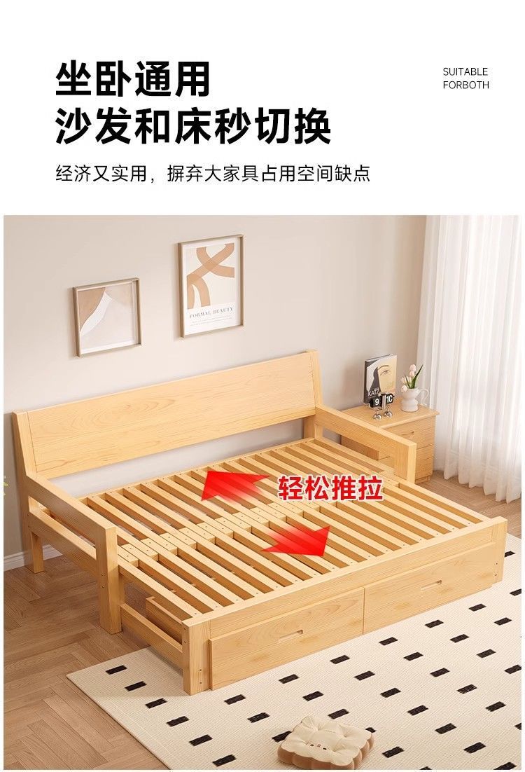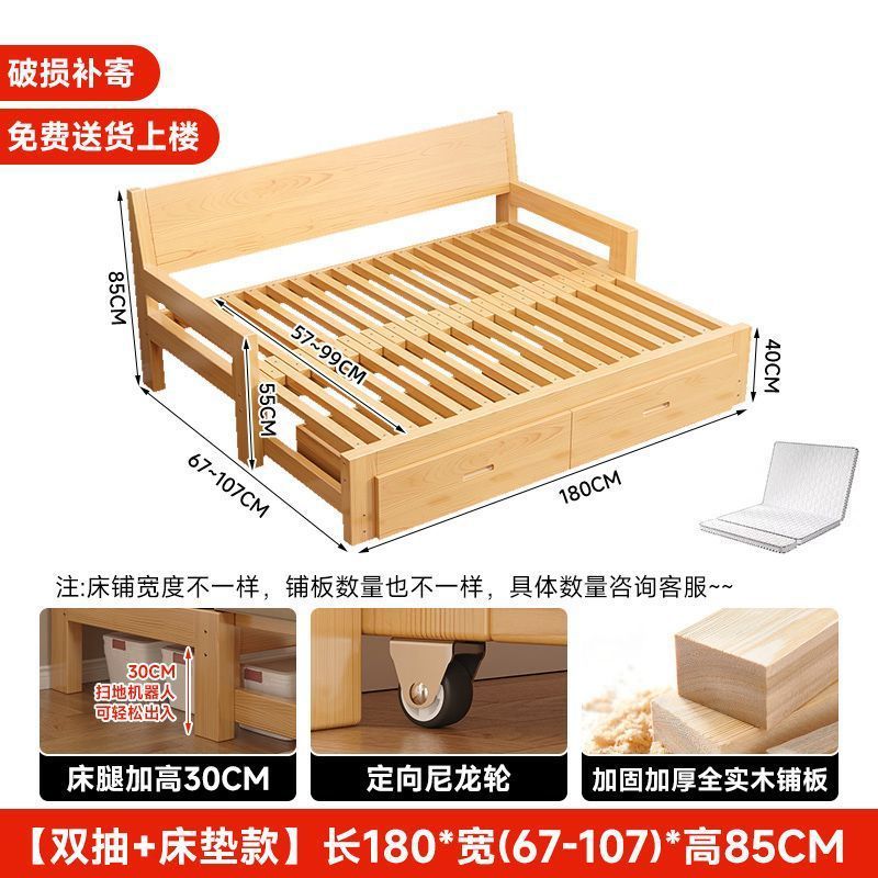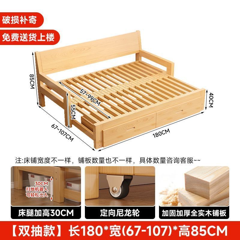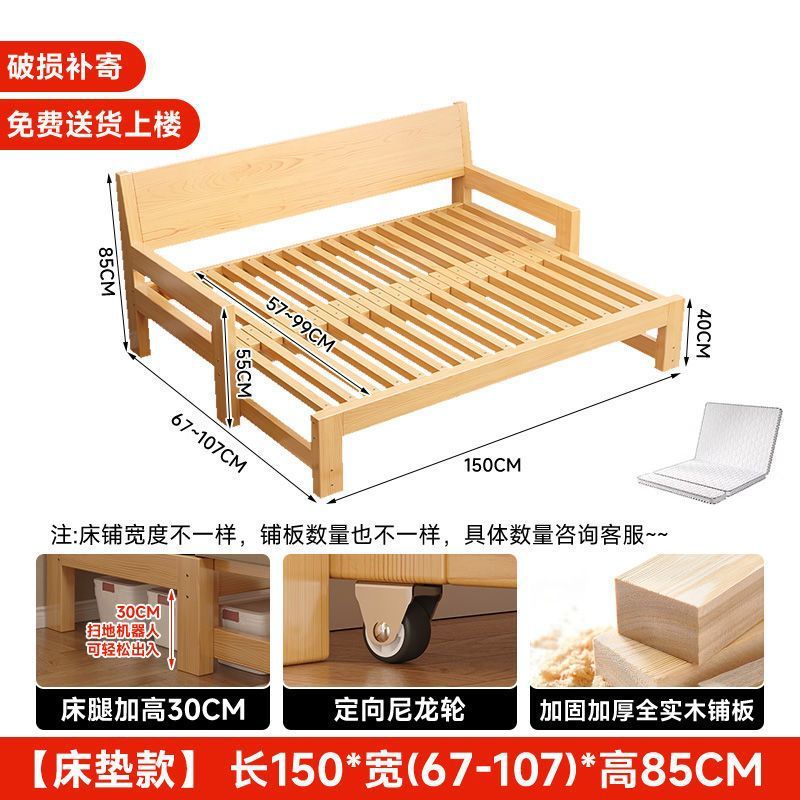 단단한 나무 소파 침대 다기능 접이식 접이식 침대 풀 침대 작은 아파트 간단한 올인원 이중 목적 텔레스코픽스토어 가기