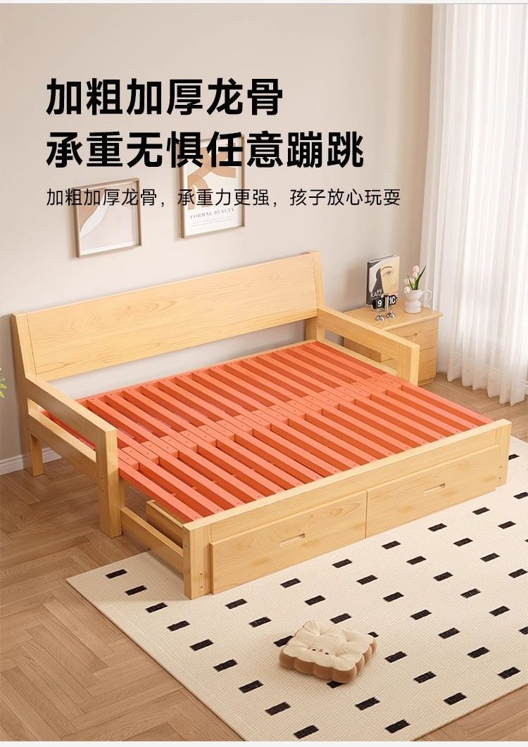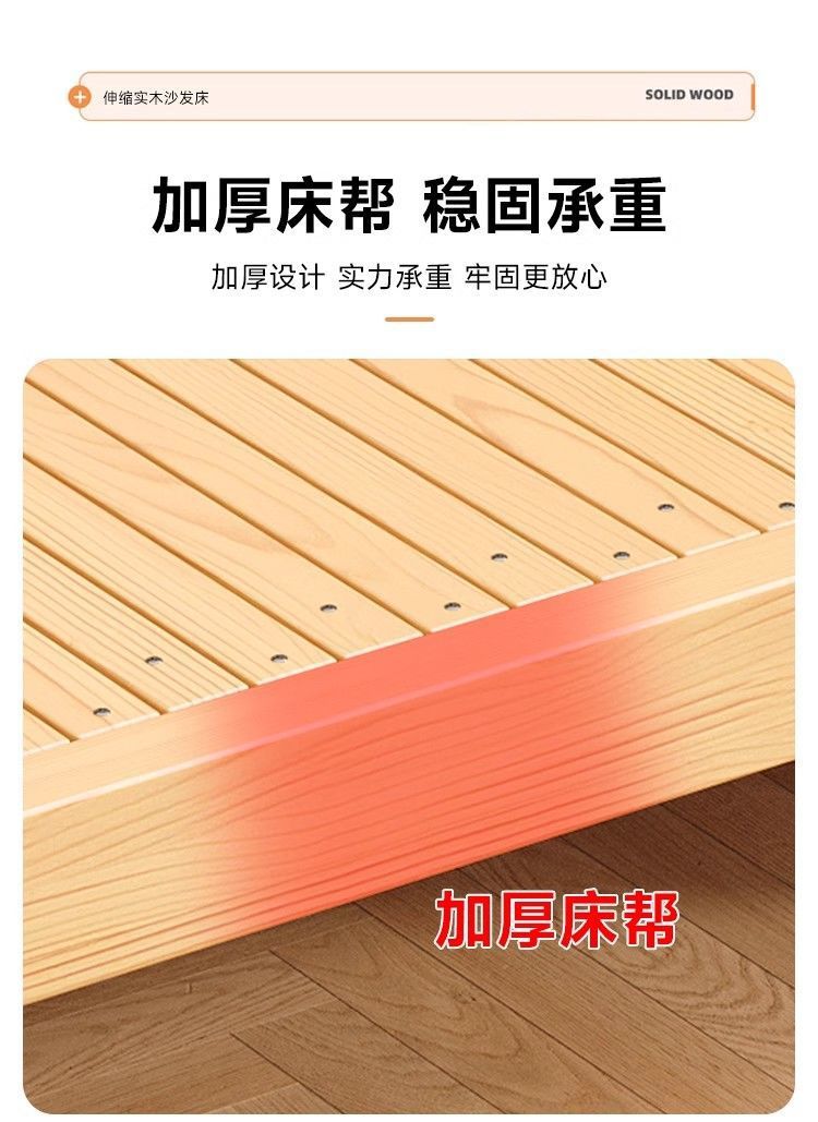 단단한 나무 소파 침대 다기능 접이식 접이식 침대 풀 침대 작은 아파트 간단한 올인원 이중 목적 텔레스코픽