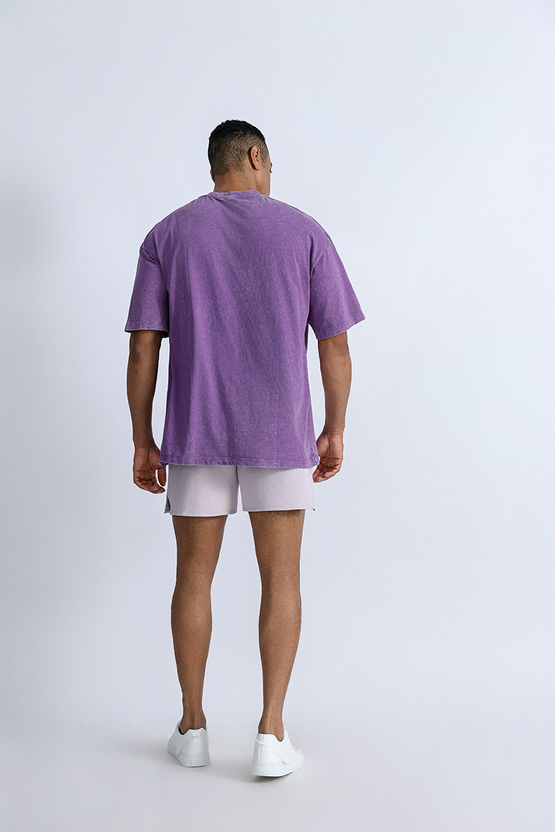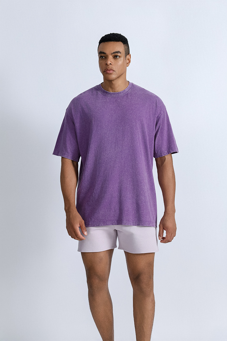 크로스보더 아메리칸 스타일 워싱 순면 티셔츠 남성용 루즈핏 드롭숄더 반팔 티셔츠 남성용 캐주얼 스포츠 풀오버 티셔츠 남성용 레트로스토어 가기