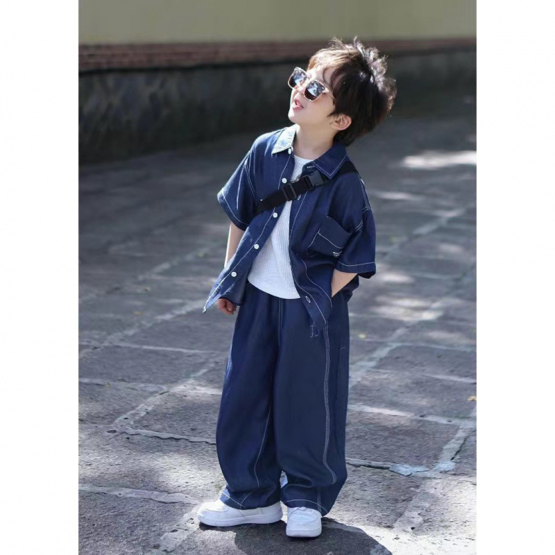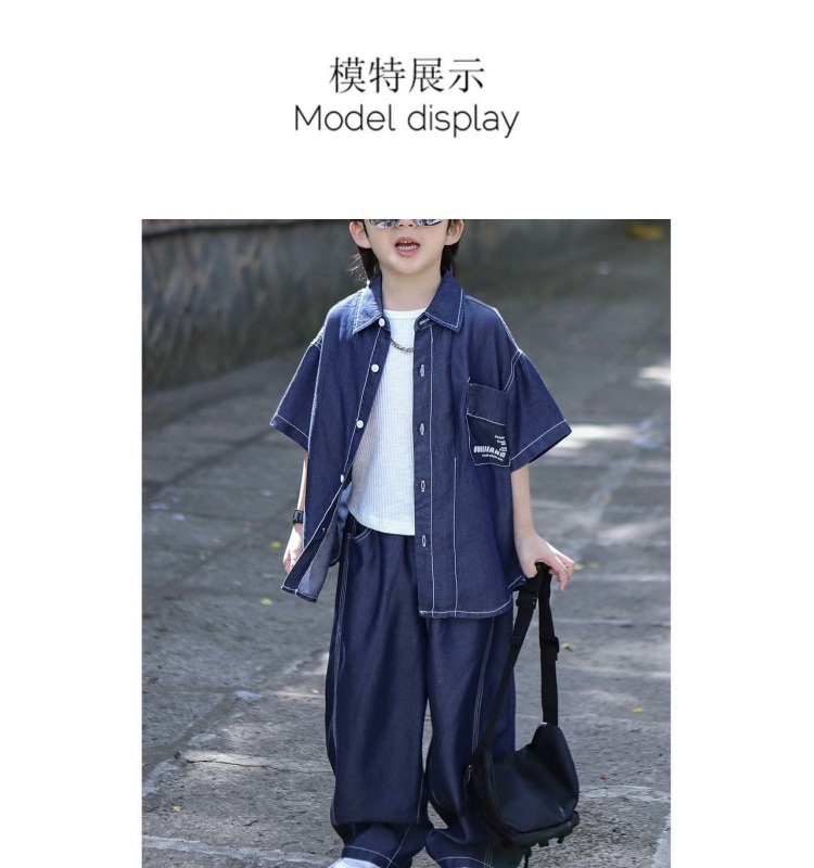 소년 여름 데님 정장 2025 새로운 중대형 어린이 여름 얇은 캐주얼 셔츠와 바지 어린이 투피스 세트스토어 가기