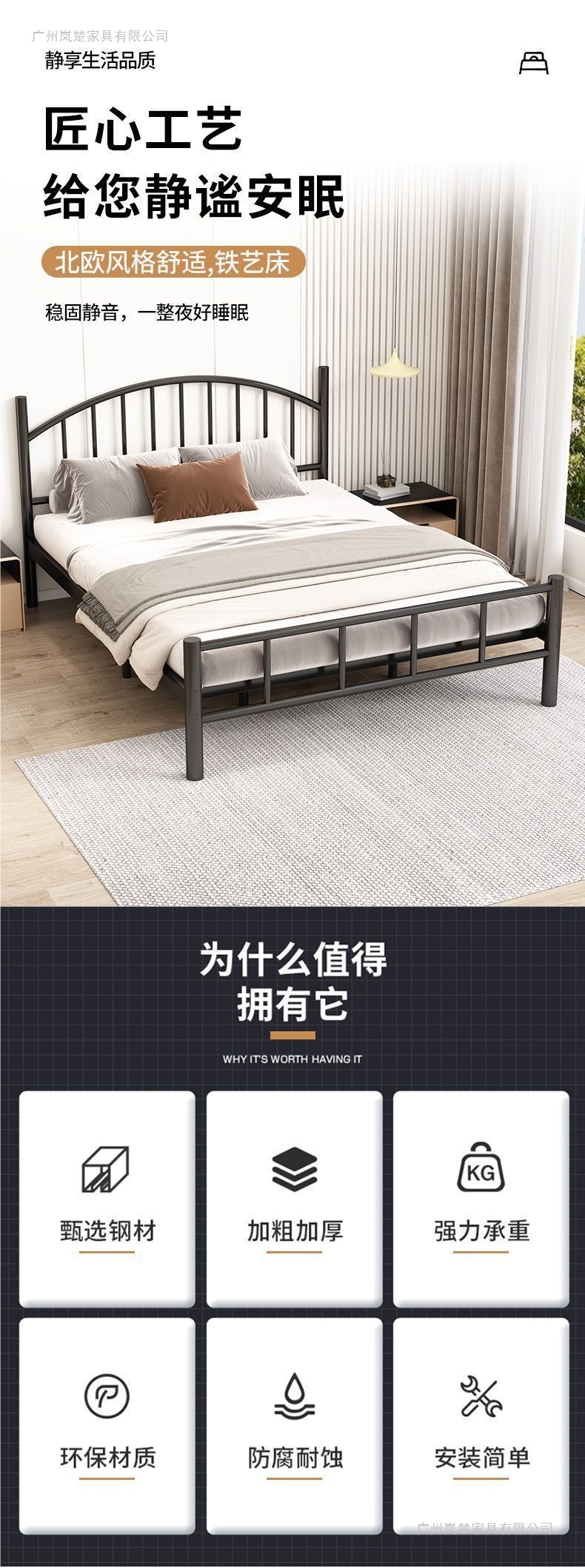 단일 침대용 심플한 프렌치 철제 침대 시트, 가정용 고급 철제 침대, 더블 침대, 철제 프레임 침대