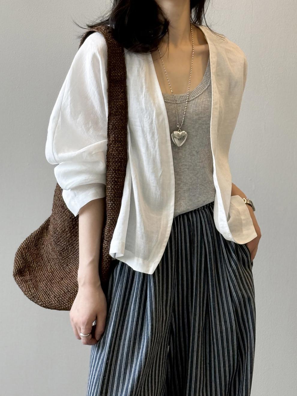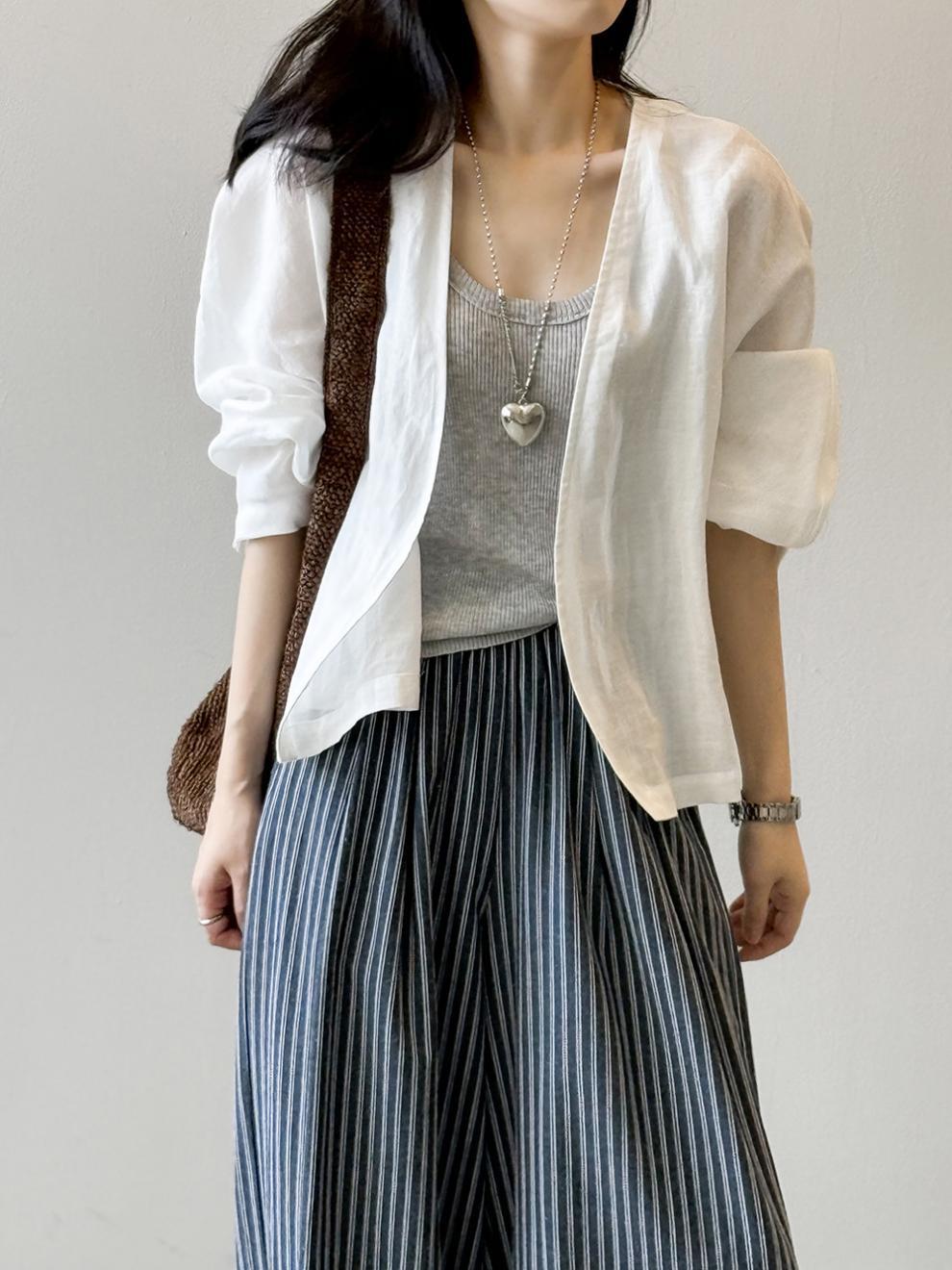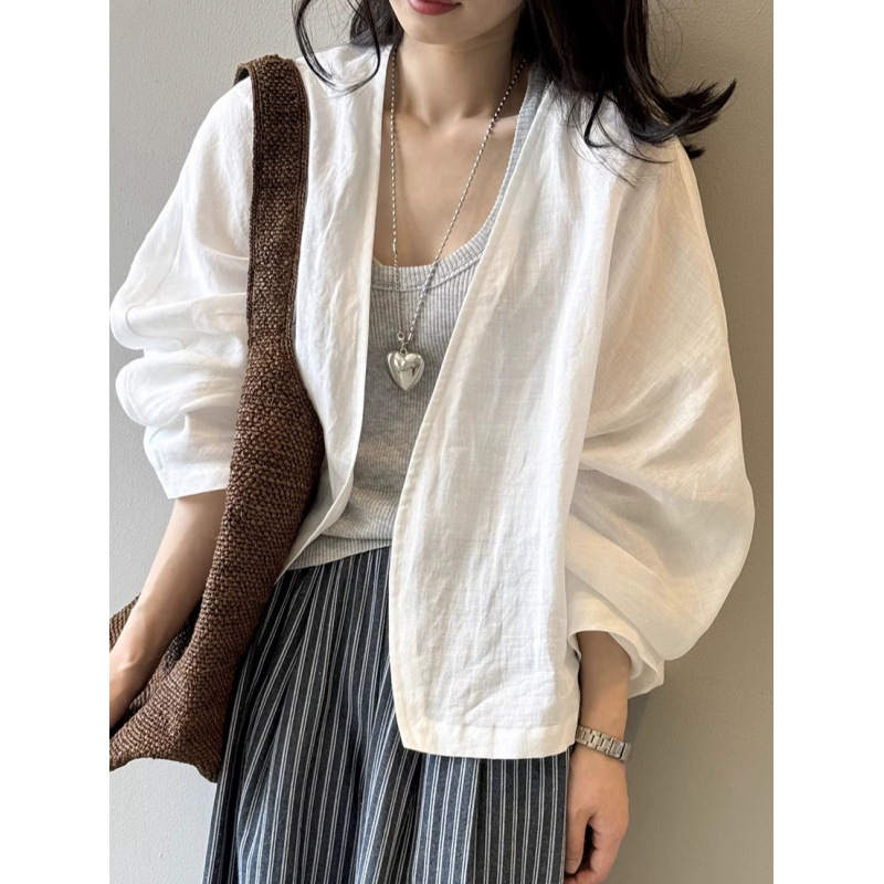 고급스러운 느낌의 여성용 모시 가디건, 2026년 여름 신상 프랑스풍 럭셔리 자외선 차단 긴팔 셔츠 상의스토어 가기
