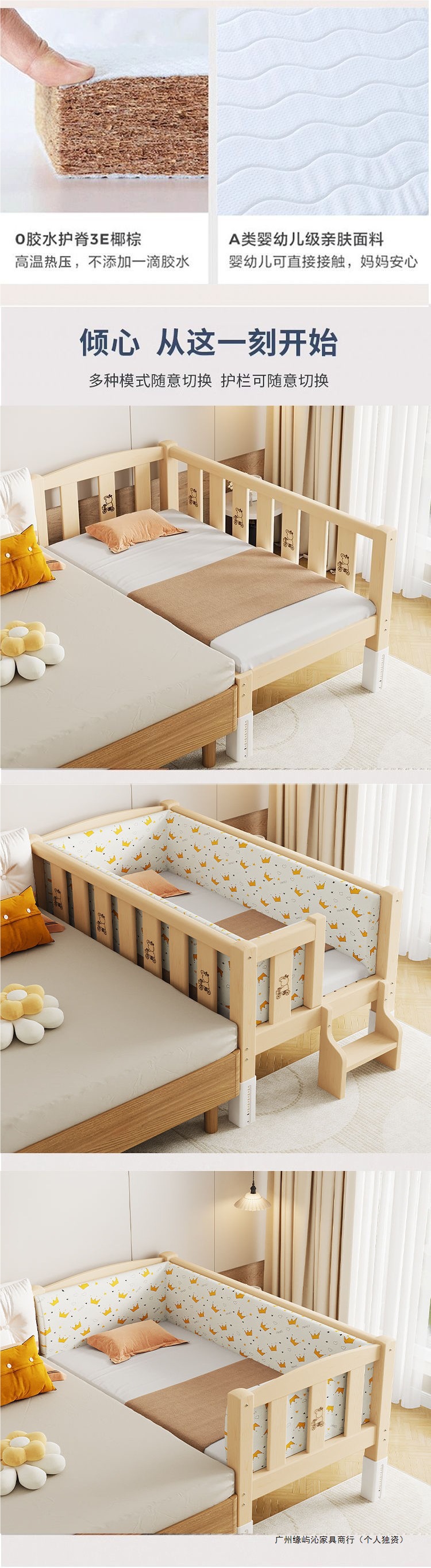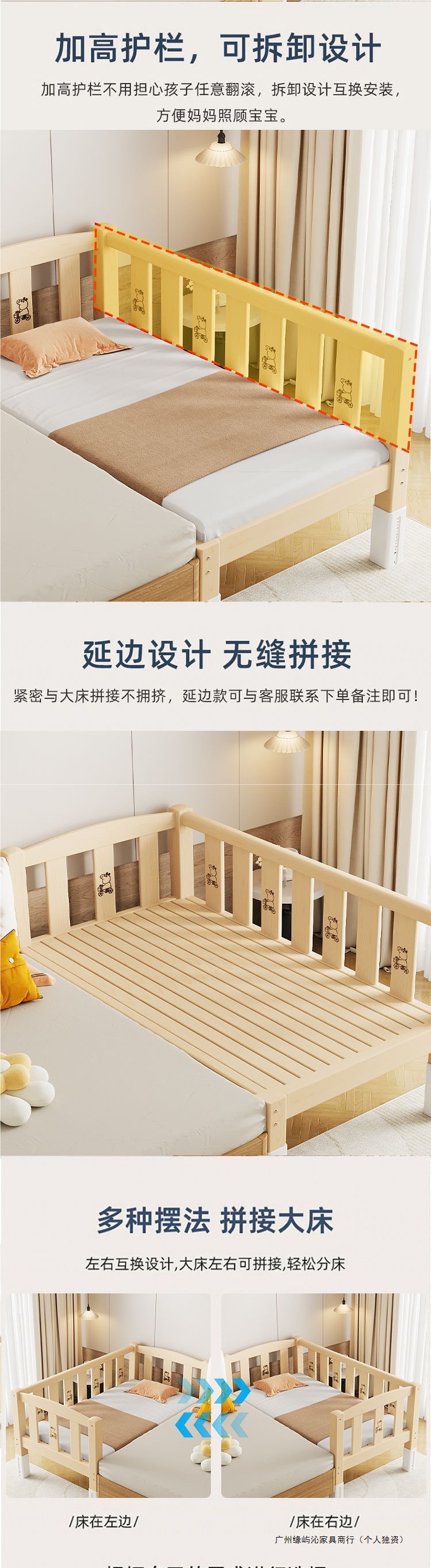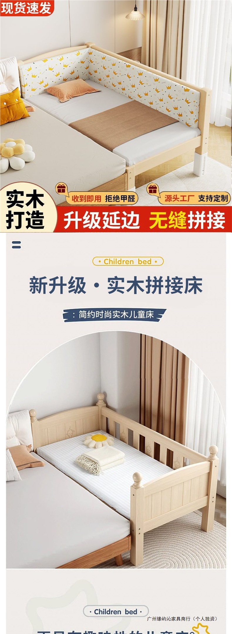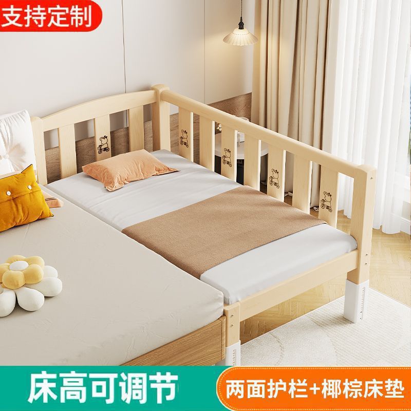 단단한 나무 아기 확장 접합 침대 소녀 싱글 침대 옆 어린이 대형 침대 가드 레일 아기 소년 아기 침대스토어 가기