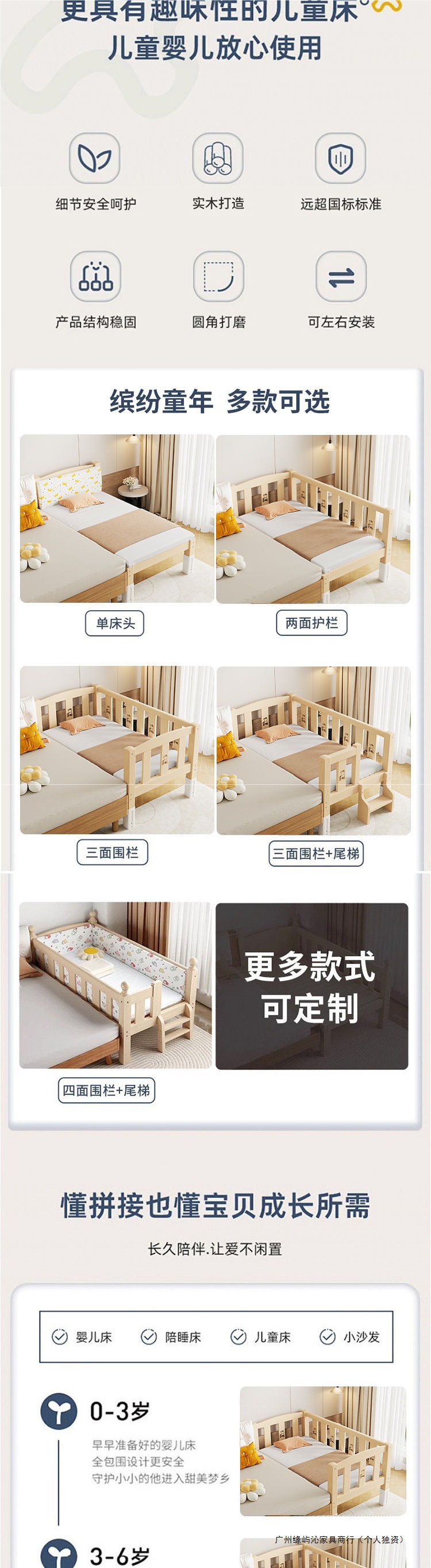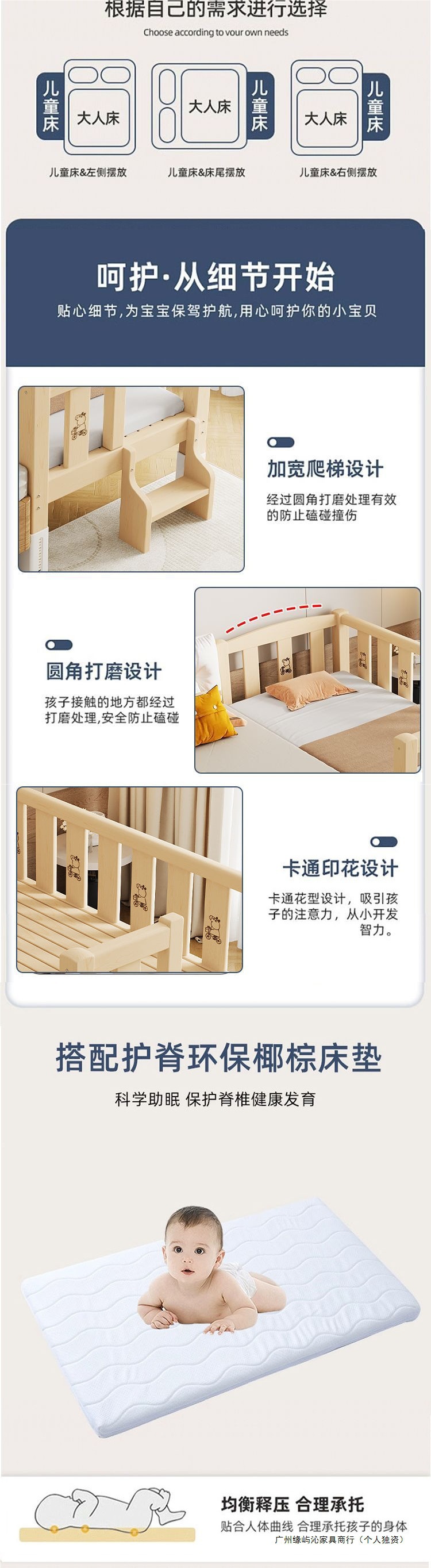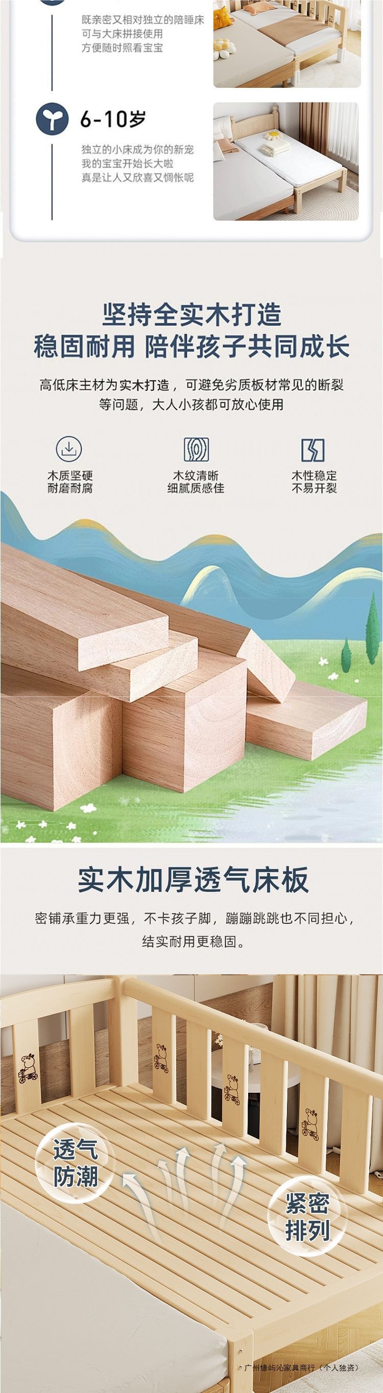 단단한 나무 아기 확장 접합 침대 소녀 싱글 침대 옆 어린이 대형 침대 가드 레일 아기 소년 아기 침대스토어 가기