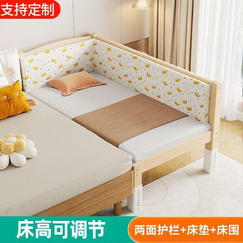 단단한 나무 아기 확장 접합 침대 소녀 싱글 침대 옆 어린이 대형 침대 가드 레일 아기 소년 아기 침대
