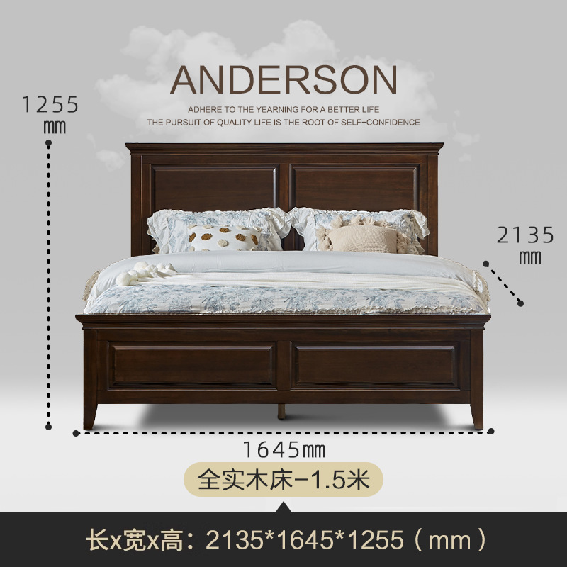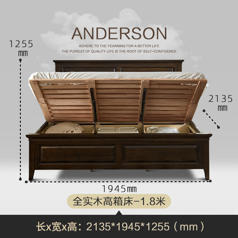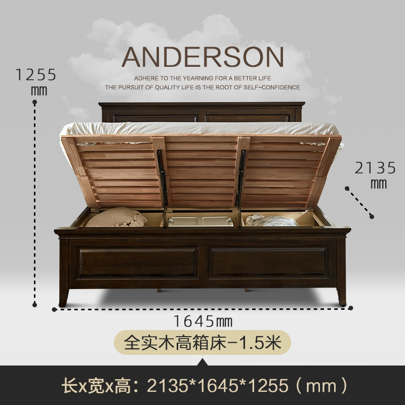 미국 컨트리 순수 원목 침대 마스터 침실 더블 1.5m 라이트 럭셔리 심플 모던 블랙 호두 색상 하이 박스 수납 침대