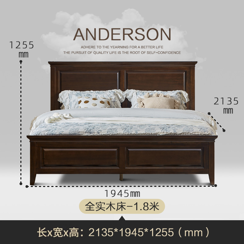 미국 컨트리 순수 원목 침대 마스터 침실 더블 1.5m 라이트 럭셔리 심플 모던 블랙 호두 색상 하이 박스 수납 침대스토어 가기