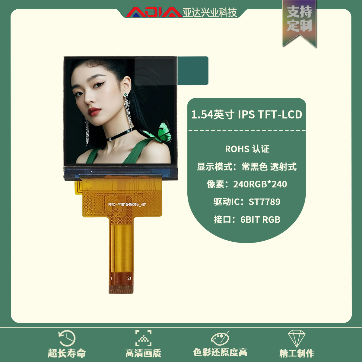 1.54inch 정사각형 디스플레이 6BITRGB 인터페이스 240*240 전자 배지 LCD 스포츠 카메라