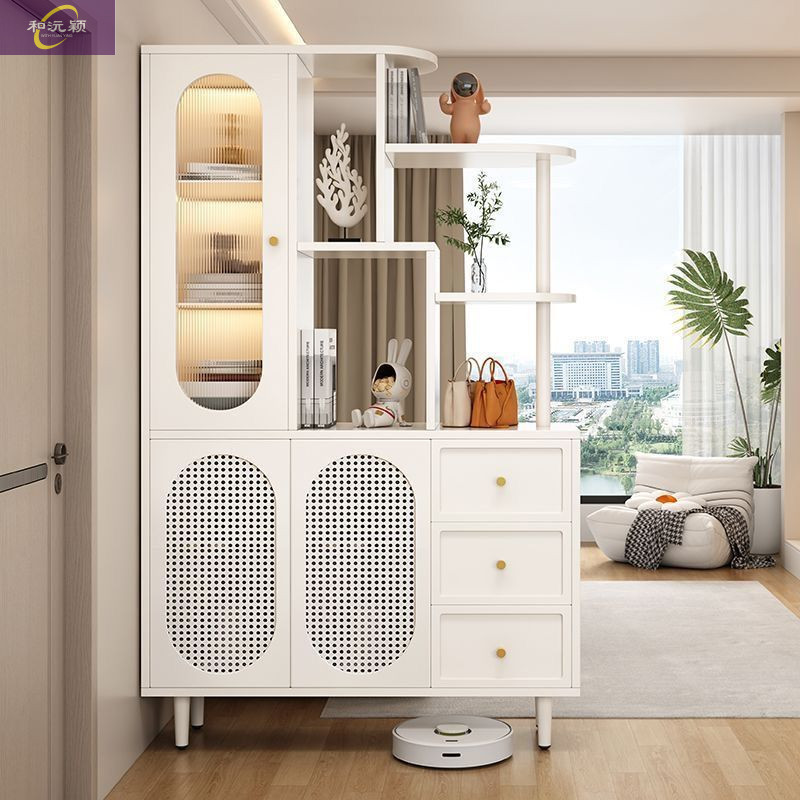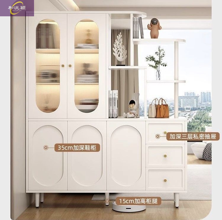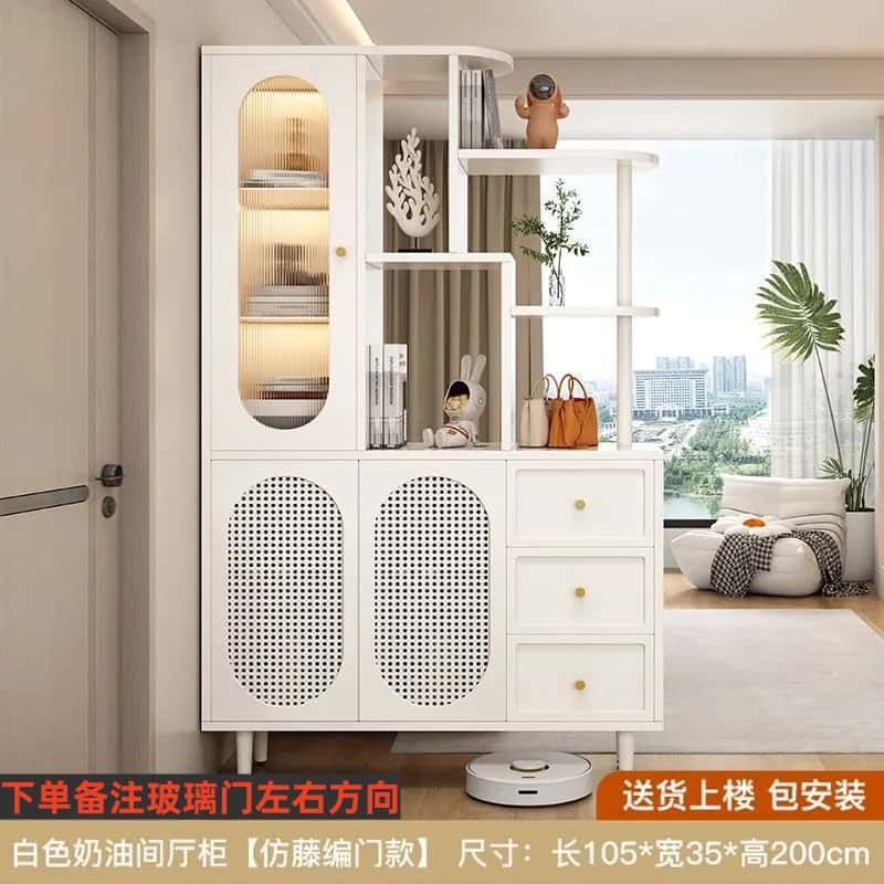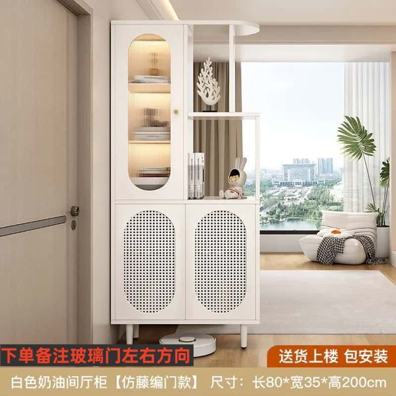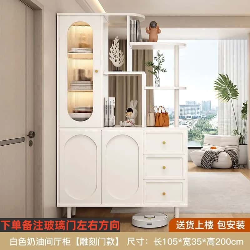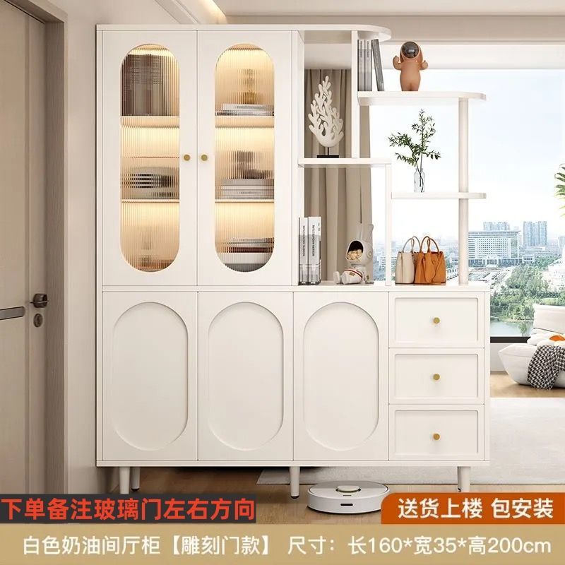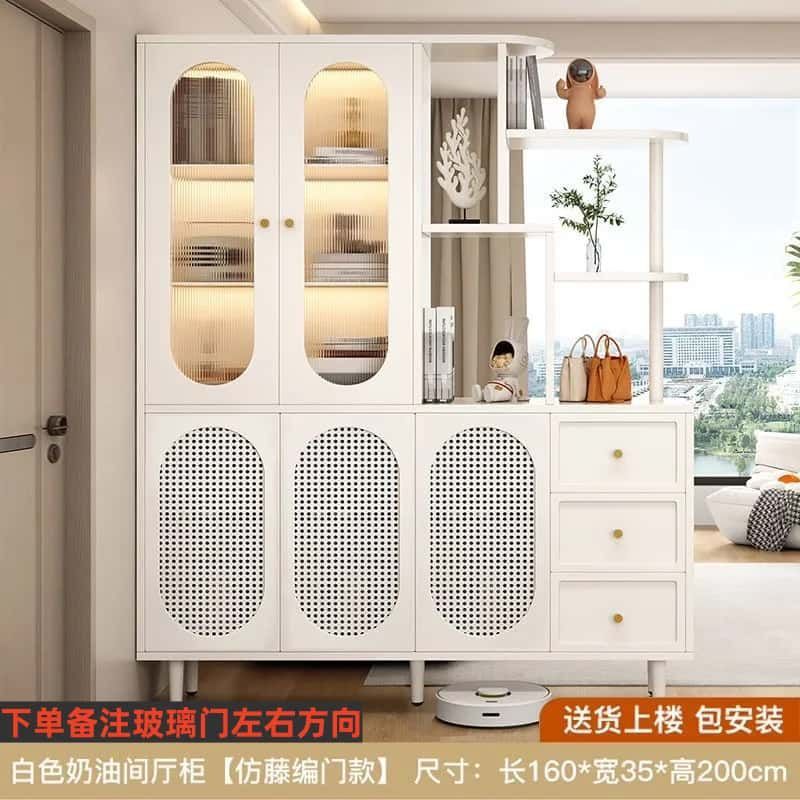 새로운 크림 스타일 입구 파티션 캐비닛, 심플한 로비 입구 캐비닛, 북유럽 스타일 신발장, 일체형 스크린 파티션 캐비닛