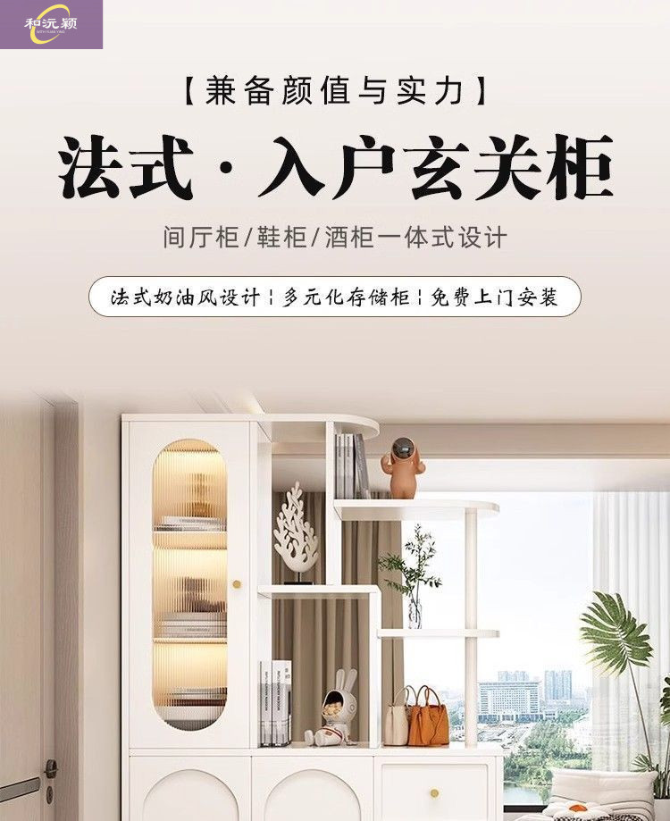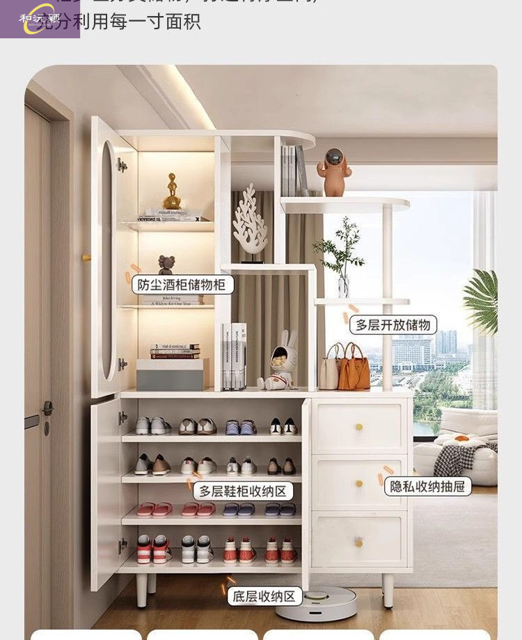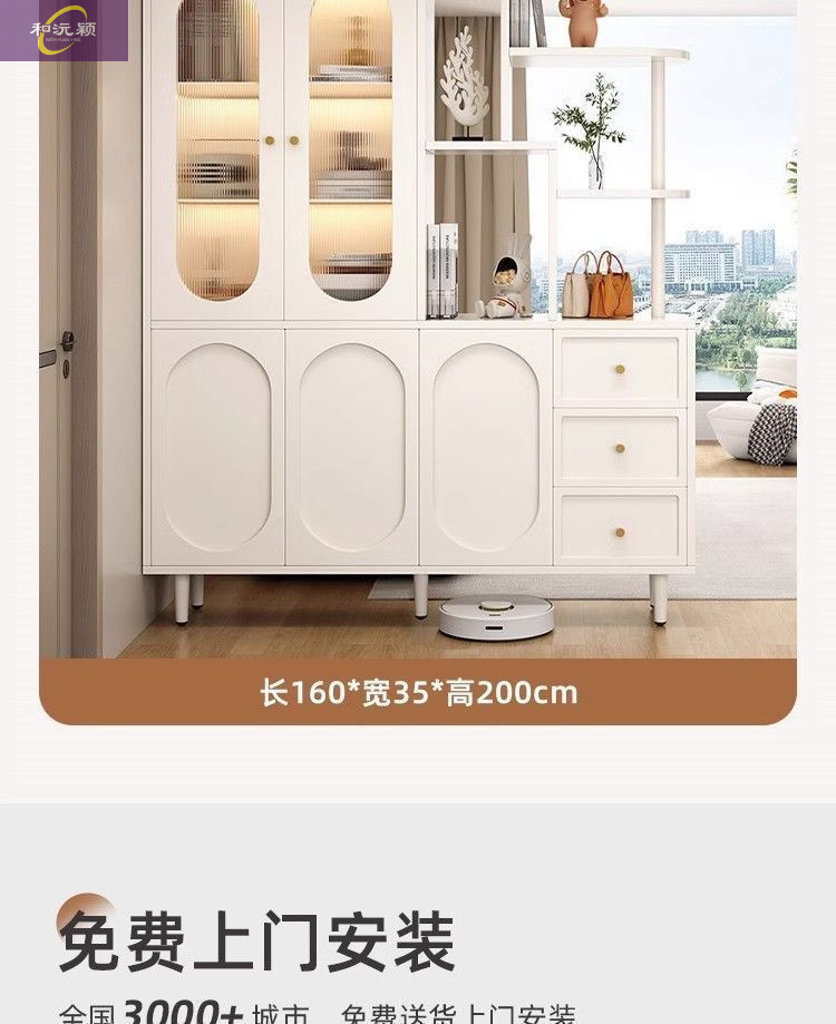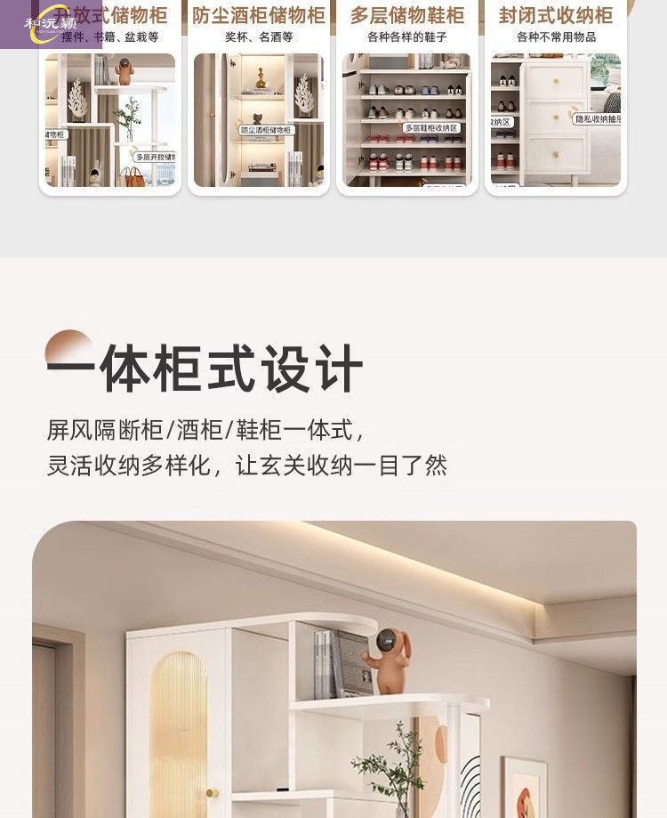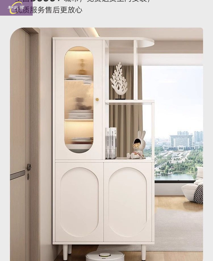 새로운 크림 스타일 입구 파티션 캐비닛, 심플한 로비 입구 캐비닛, 북유럽 스타일 신발장, 일체형 스크린 파티션 캐비닛스토어 가기