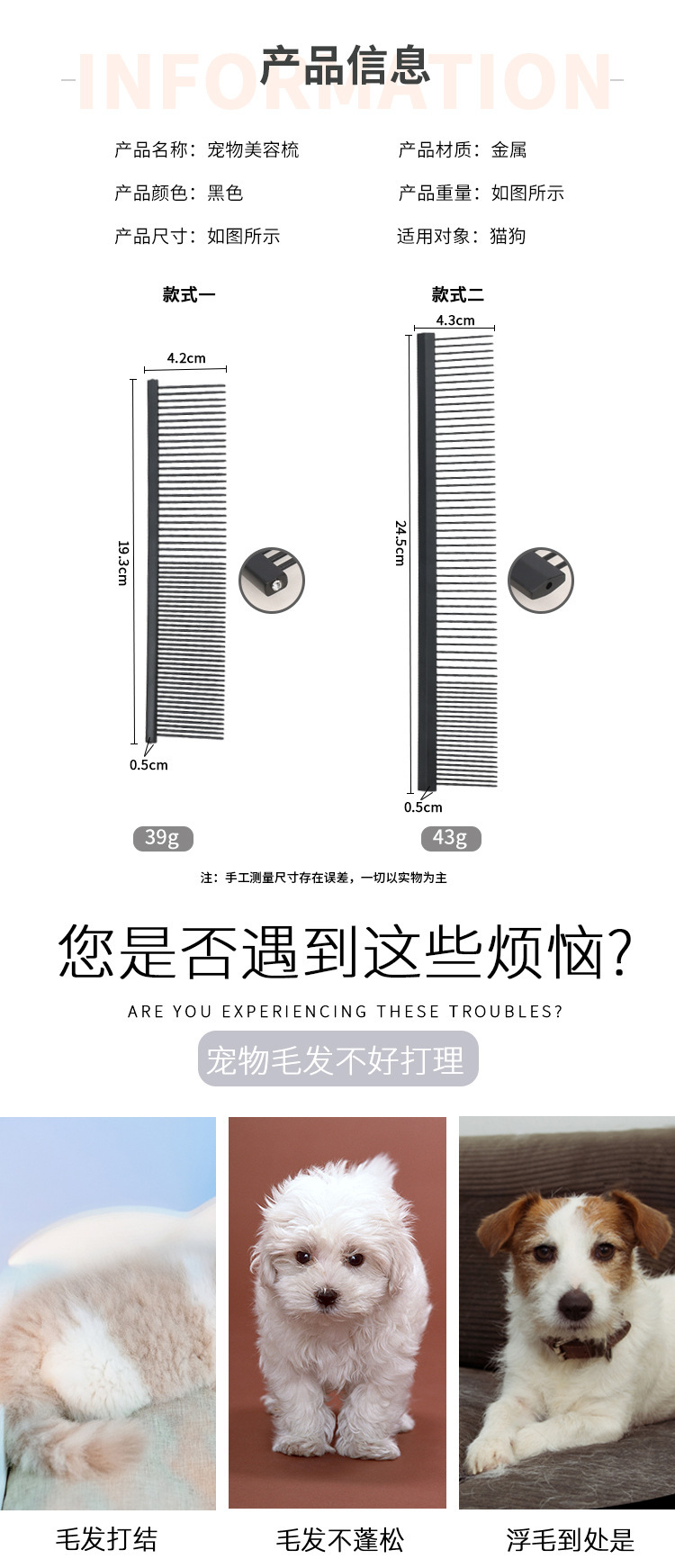 애완동물 빗 고양이 빗 강아지 고양이 엉킴 풀기 빗 강철 빗 털 제거 강아지 털 손질용 특수 빗스토어 가기