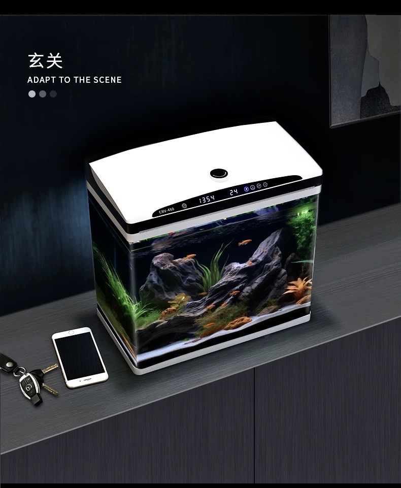 Changrui 수조 거실 홈 데스크탑 소형 수조 자체 순환 게으른 올인원 물 교체가 없는 수족관 공장 직접 판매