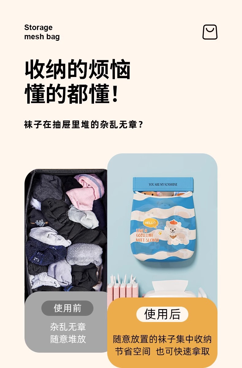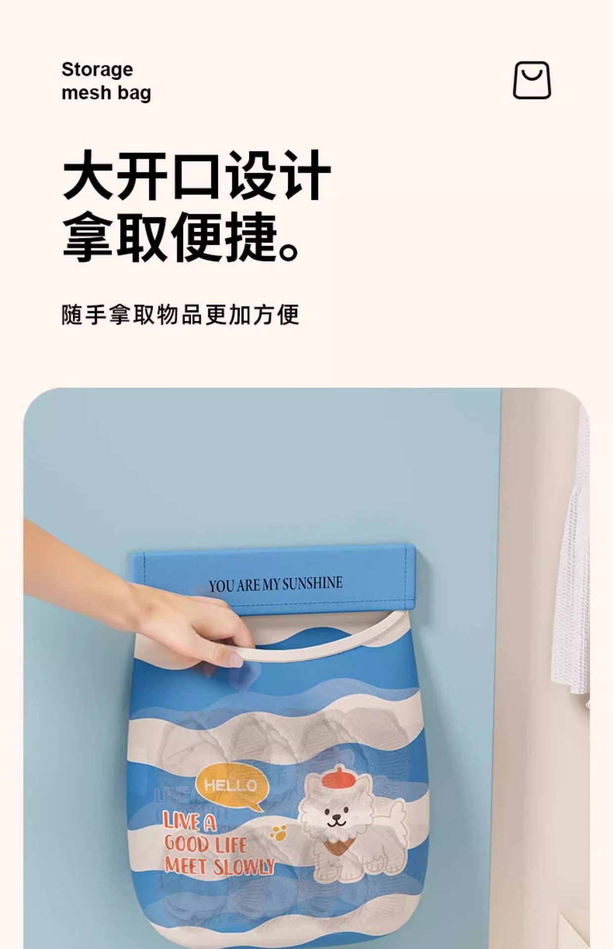 다기능 수납 메쉬백, 주방 쓰레기봉투, 벽걸이형 대용량 수납봉투, 벨크로 메쉬백 수납용품스토어 가기