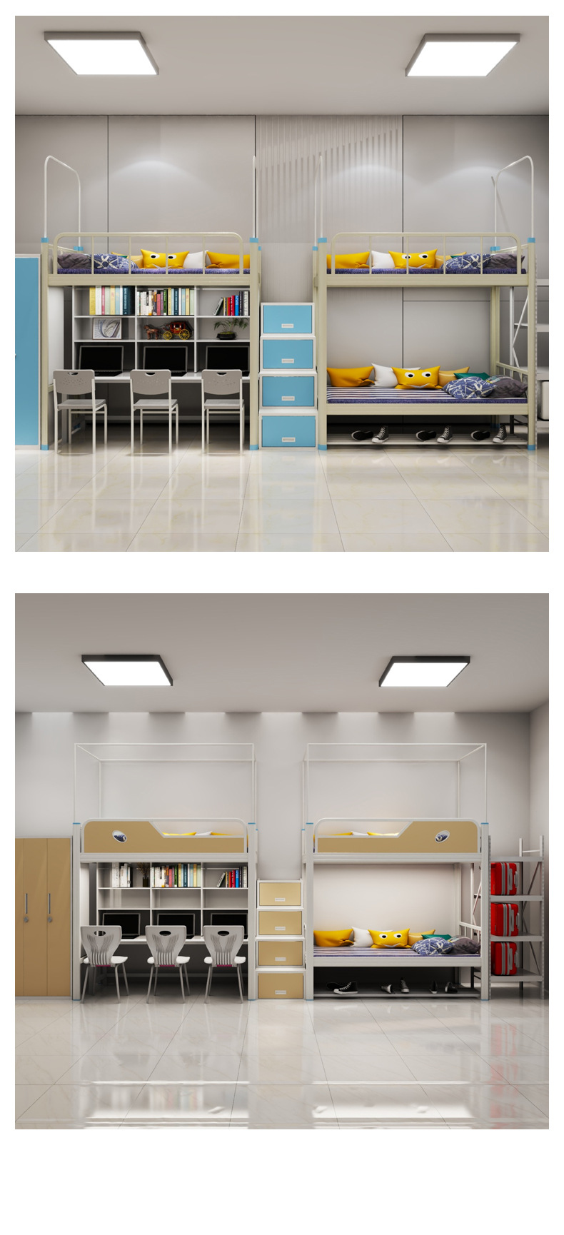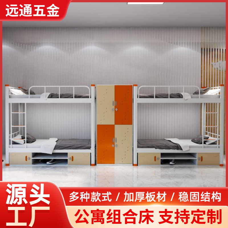 신발장 수납장이 있는 4인용 이층침대 아파트 침대 조합, 다인용 기숙사 철제 이층침대 맞춤형스토어 가기