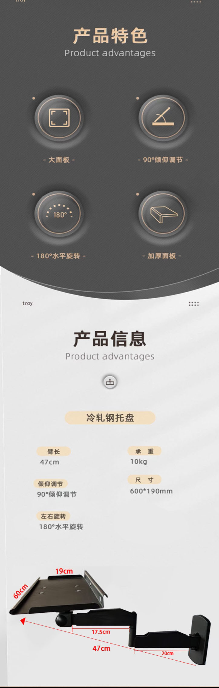 범용 컴퓨터 모니터 키보드 마우스 트레이 홀더 텔레스코픽 회전 랙 공장 CNC 기계 사무실 스탠드스토어 가기