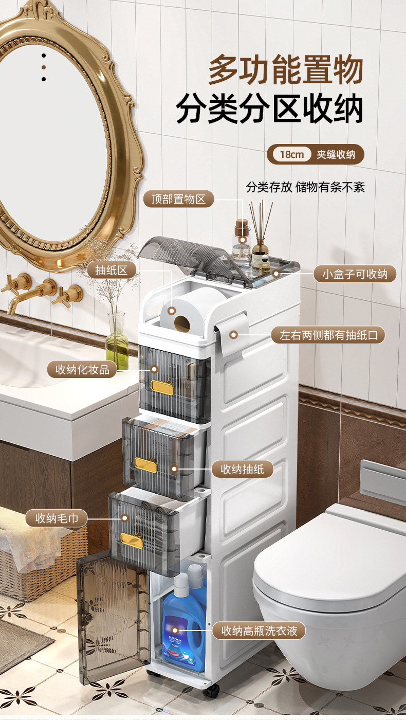 욕실 틈새 수납장 18cm 좁은 공간용 서랍형 수납장 화장실 수납장 변기 선반