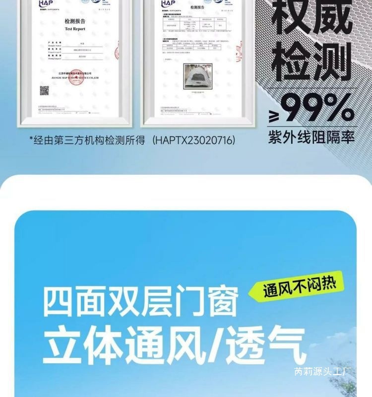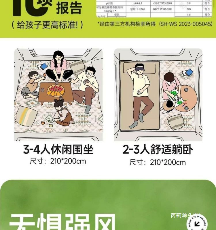 • 검은색 접착제로 강화된 자외선 차단 [문 2개, 창문 2개] 2~3인용 방습 매트 ✬