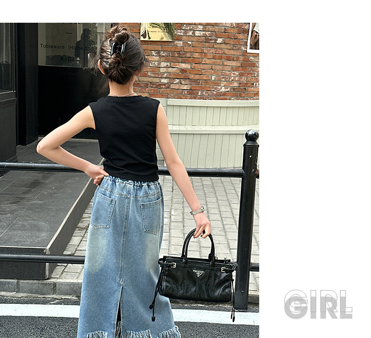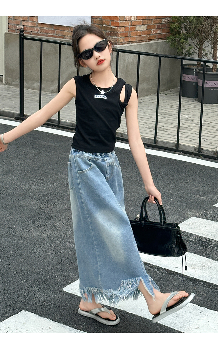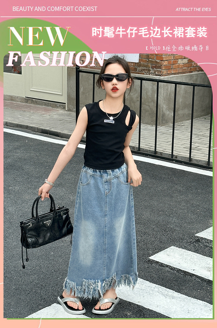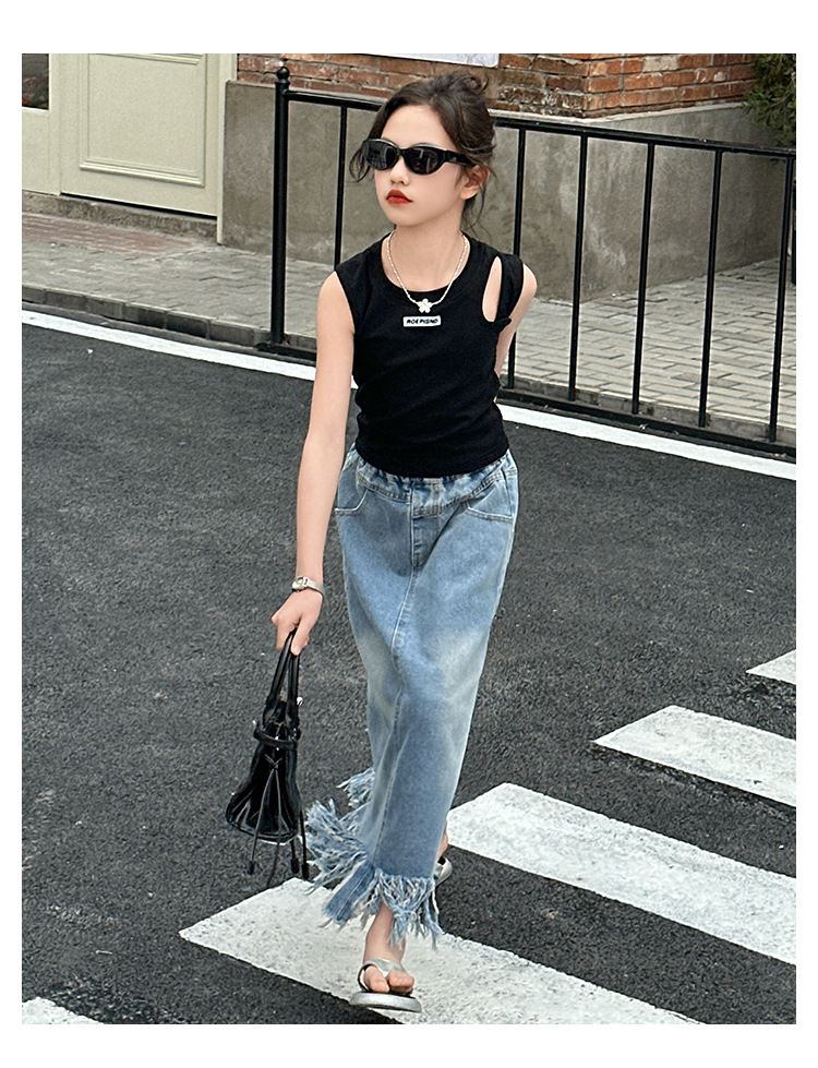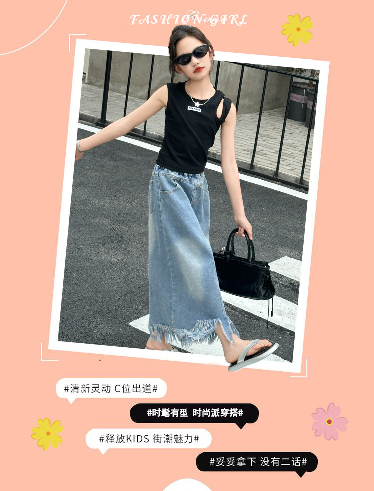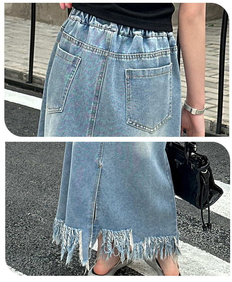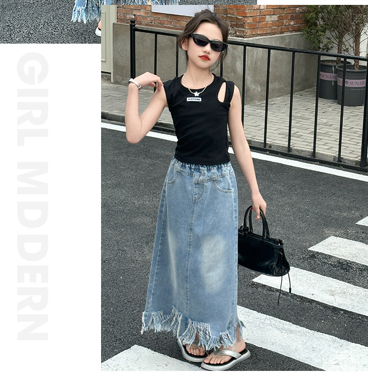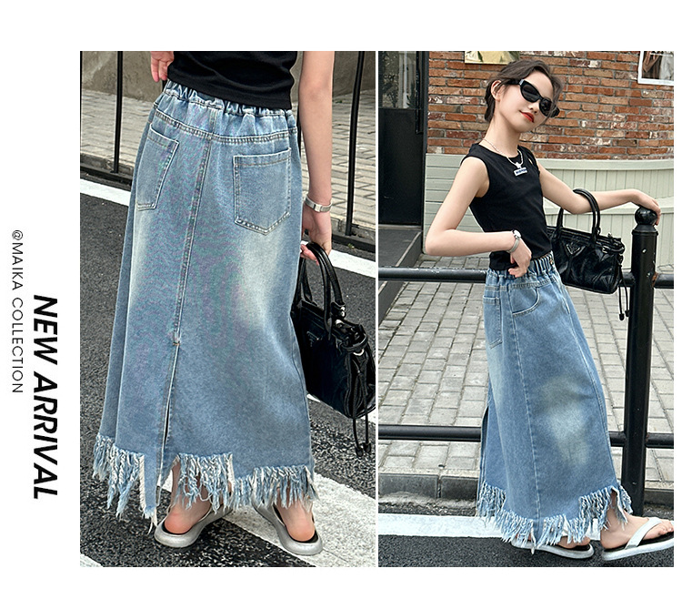 여자 데님 스커트 여름 스커트 2025 새로운 스타일 어린이 태슬 스커트 여자 여름 스타일 롱 스커트스토어 가기
