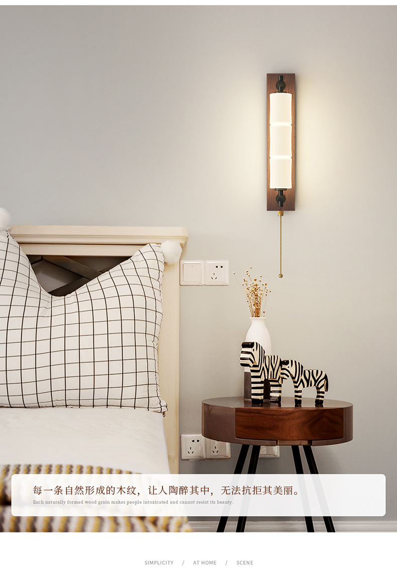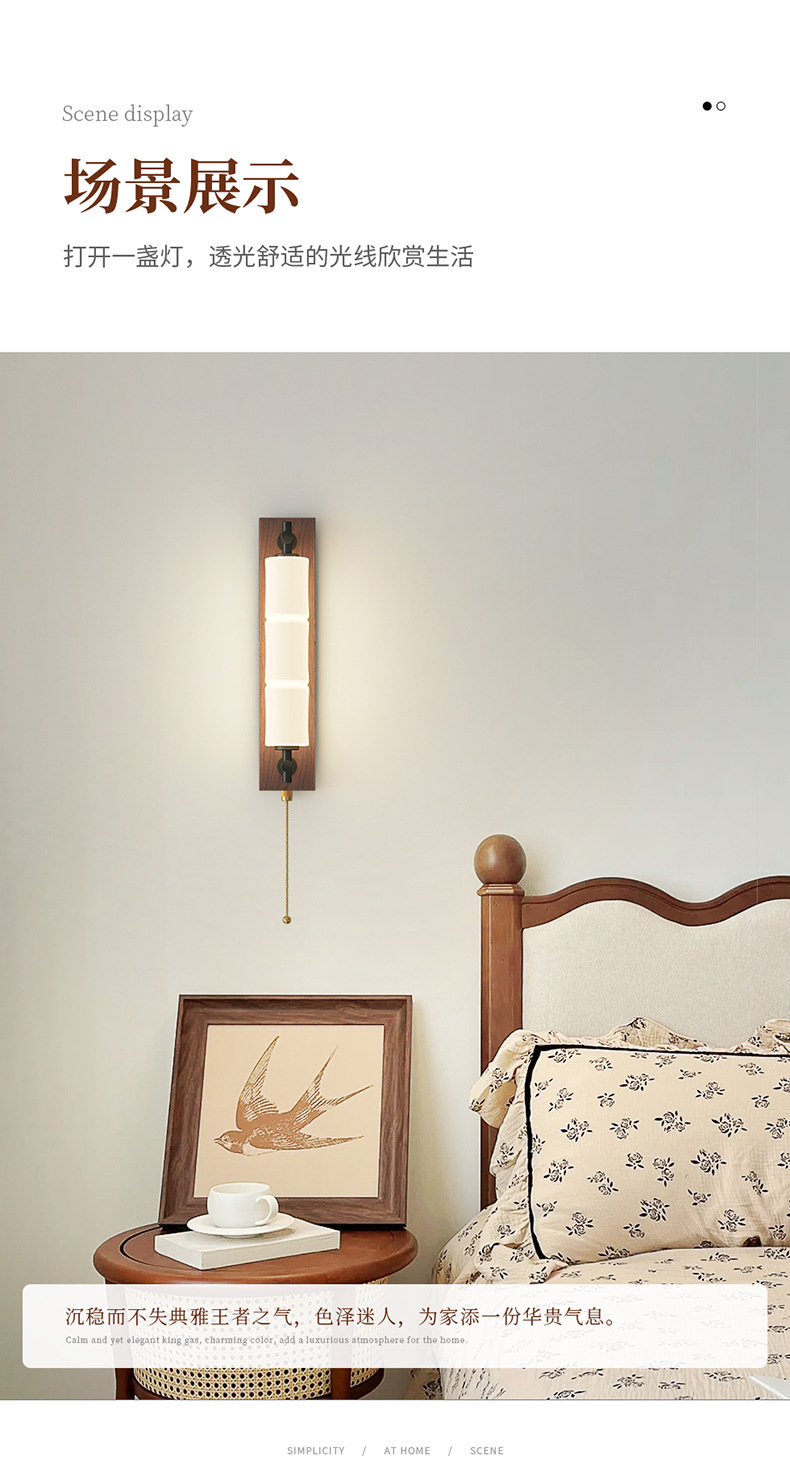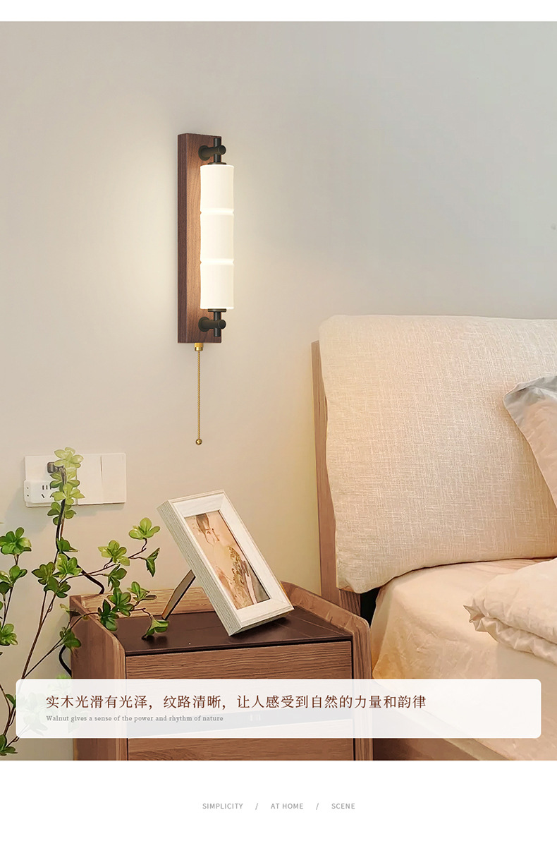 새로운 중국 스타일의 침실 벽 램프 간단하고 창의적인 긴 대나무 새로운 침실 머리맡 복도 통로 입구 벽 램프스토어 가기