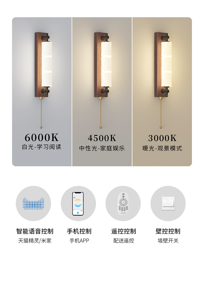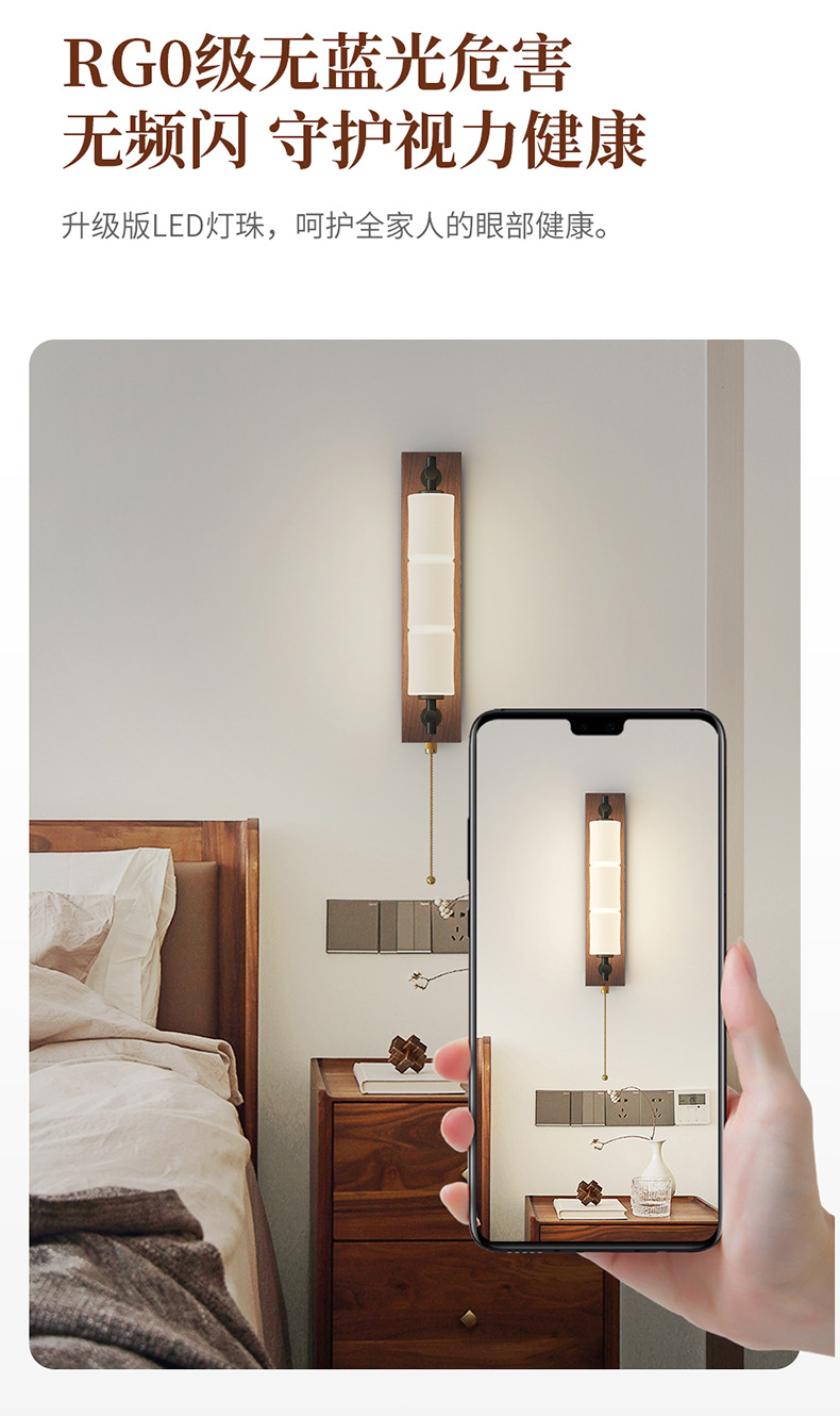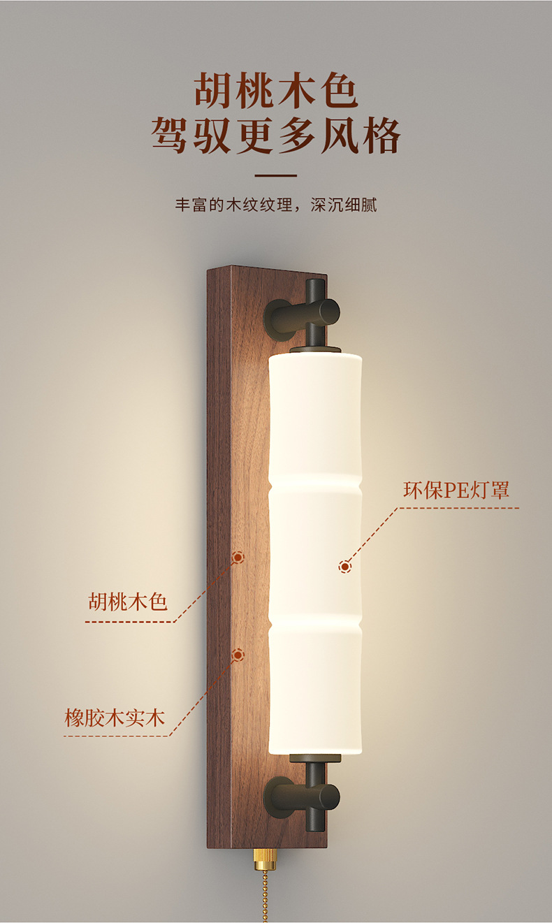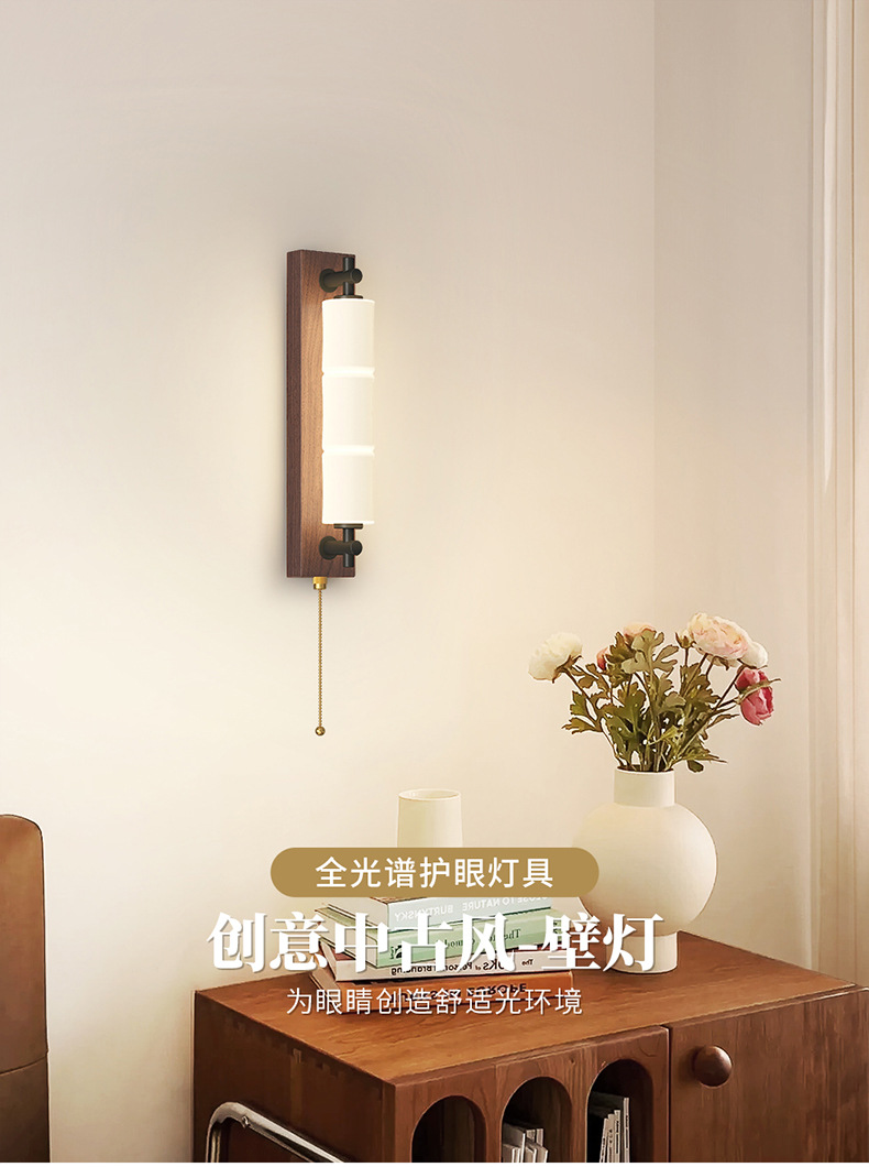 새로운 중국 스타일의 침실 벽 램프 간단하고 창의적인 긴 대나무 새로운 침실 머리맡 복도 통로 입구 벽 램프스토어 가기